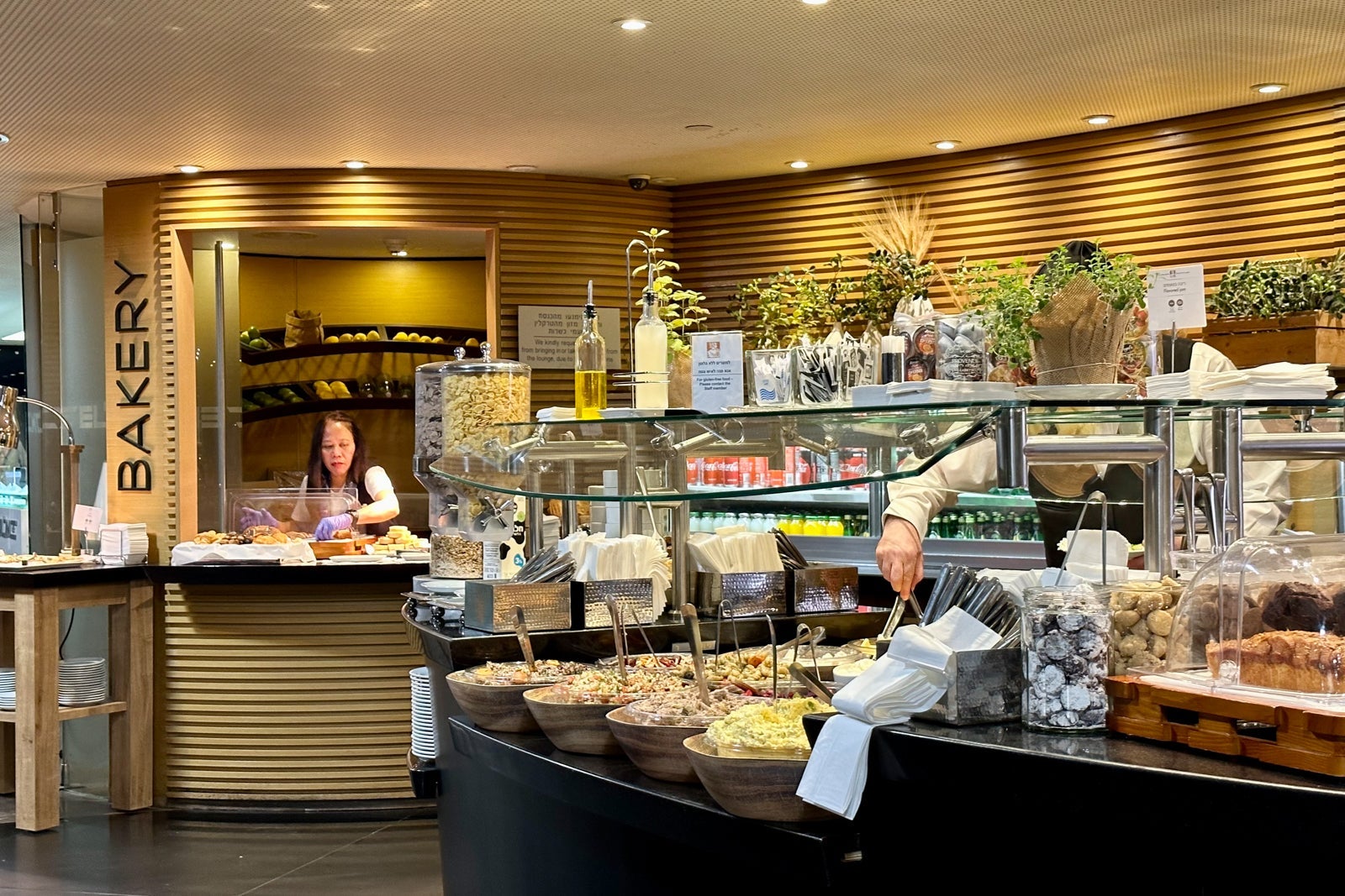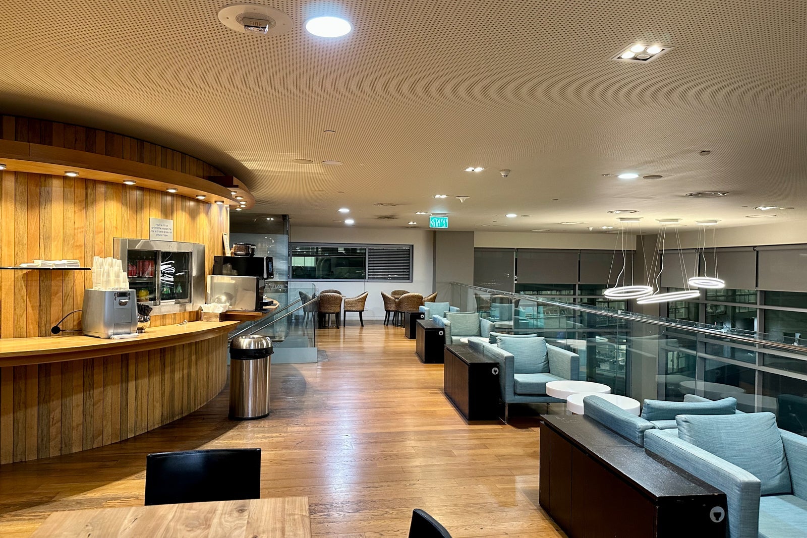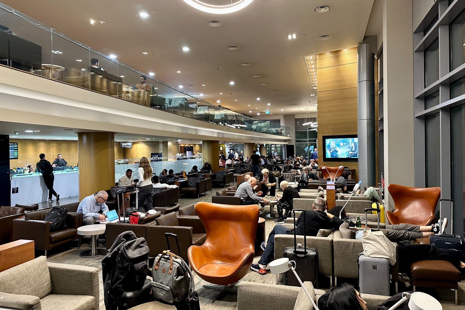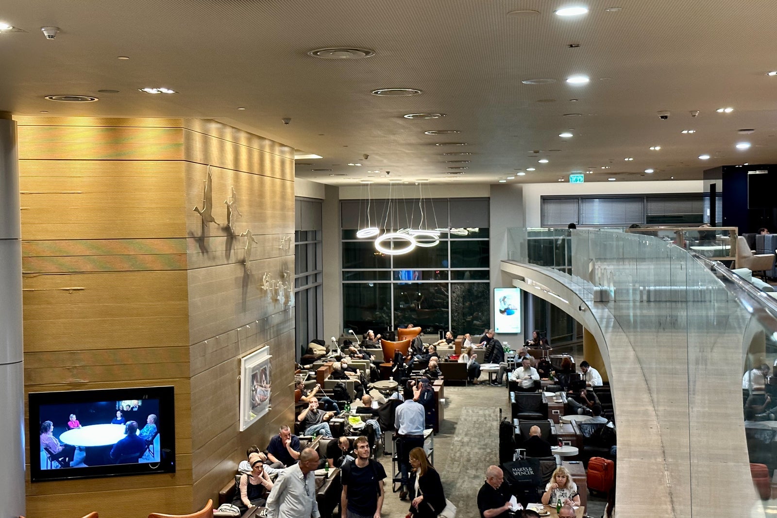 It's worth noting that the space can get quite crowded during peak departure banks. I'd recommend heading upstairs for a seat if you can't find one when you enter the lower level.