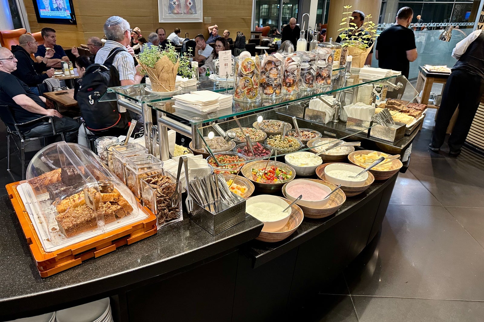 This two-story space is El Al's only lounge in Tel Aviv, and it features a variety of seating options, as well as a pretty extensive buffet. In addition to a range of tasty Middle Eastern salads and dips, you can enjoy freshly baked pizzas, soups and dessert cakes.