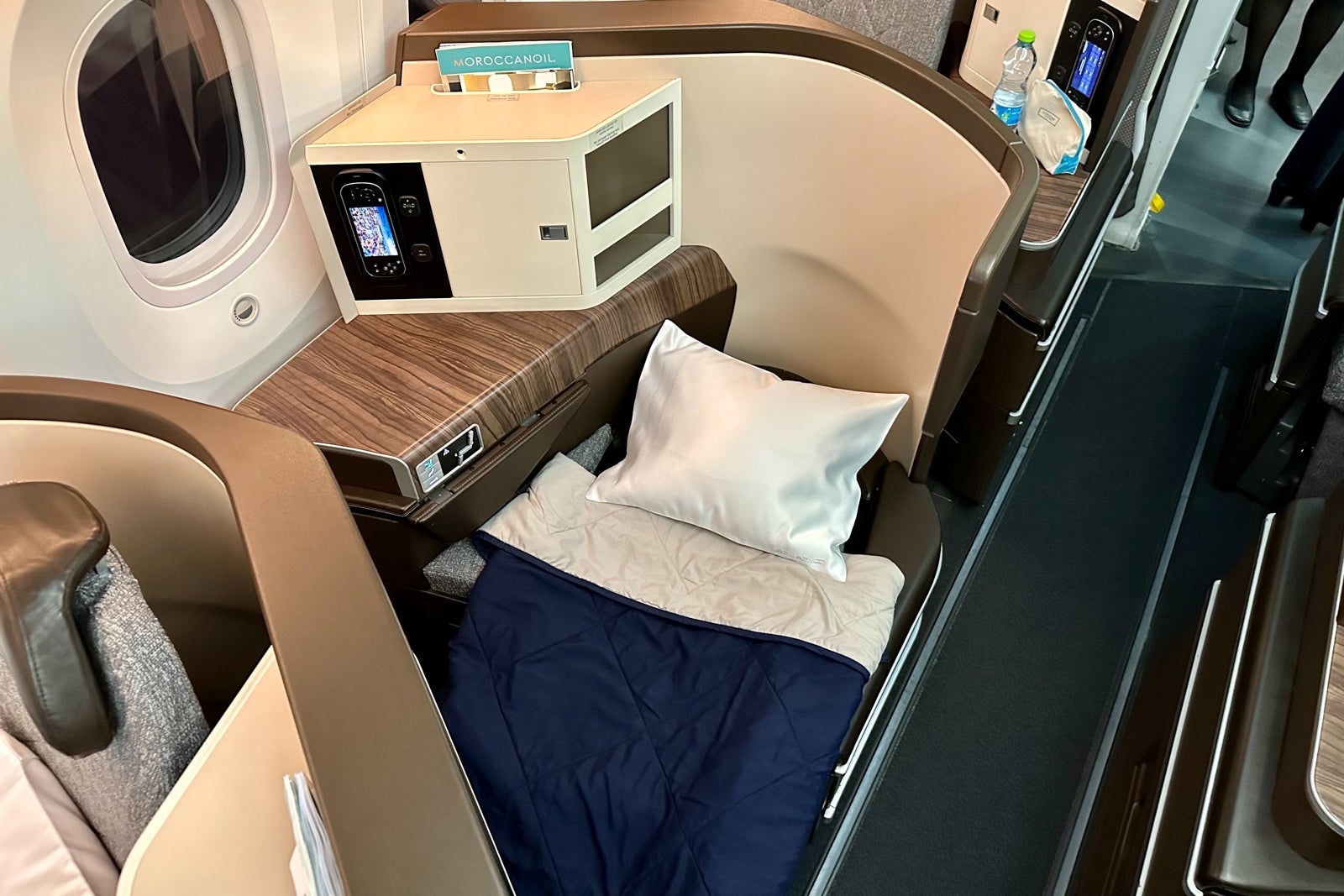 Perhaps it was because my flight was operated by a Dreamliner, which normally flies longer-haul missions, but waiting at my seat during boarding was El Al's signature pillow and duvet made by Hollandia.