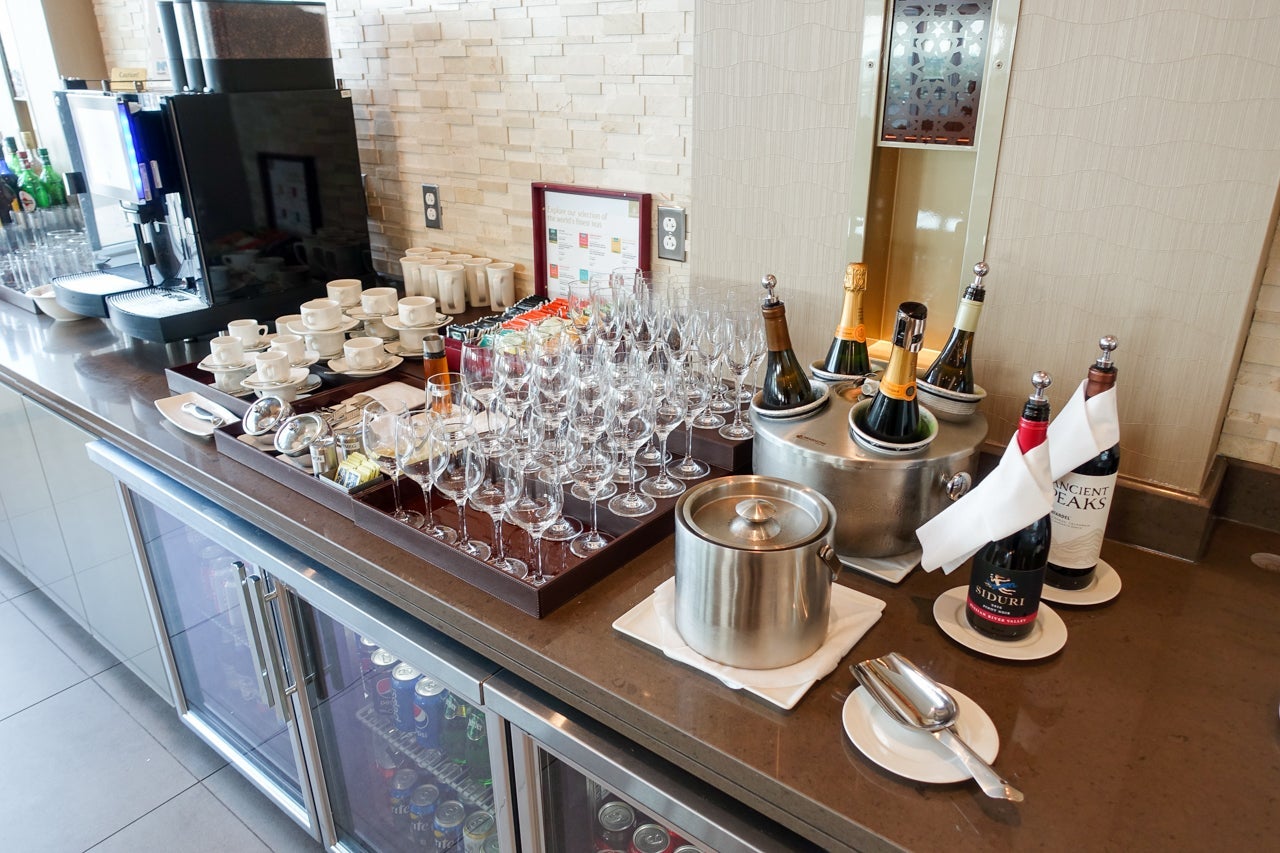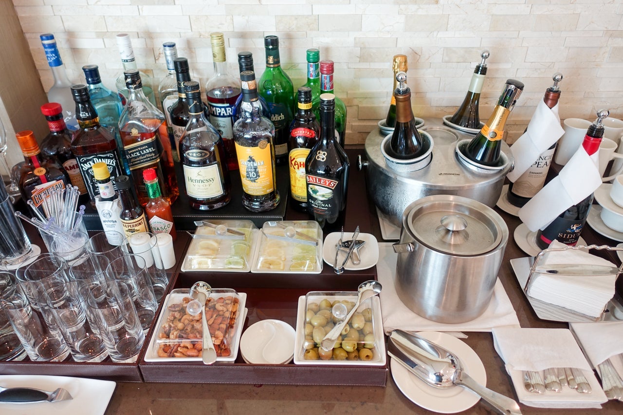 The lounge also featured two self-serve bars. I'm a fan of a self-serve bar, and the ones in the EK lounge were pretty great and came with a good variety of beers, wines and spirits. Veuve Clicquot Champagne was served in the lounge (and on the ground aboard the aircraft), but you had to wait until after takeoff for the Dom to start flowing.