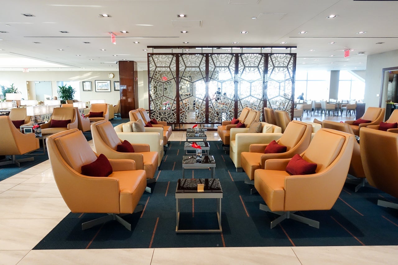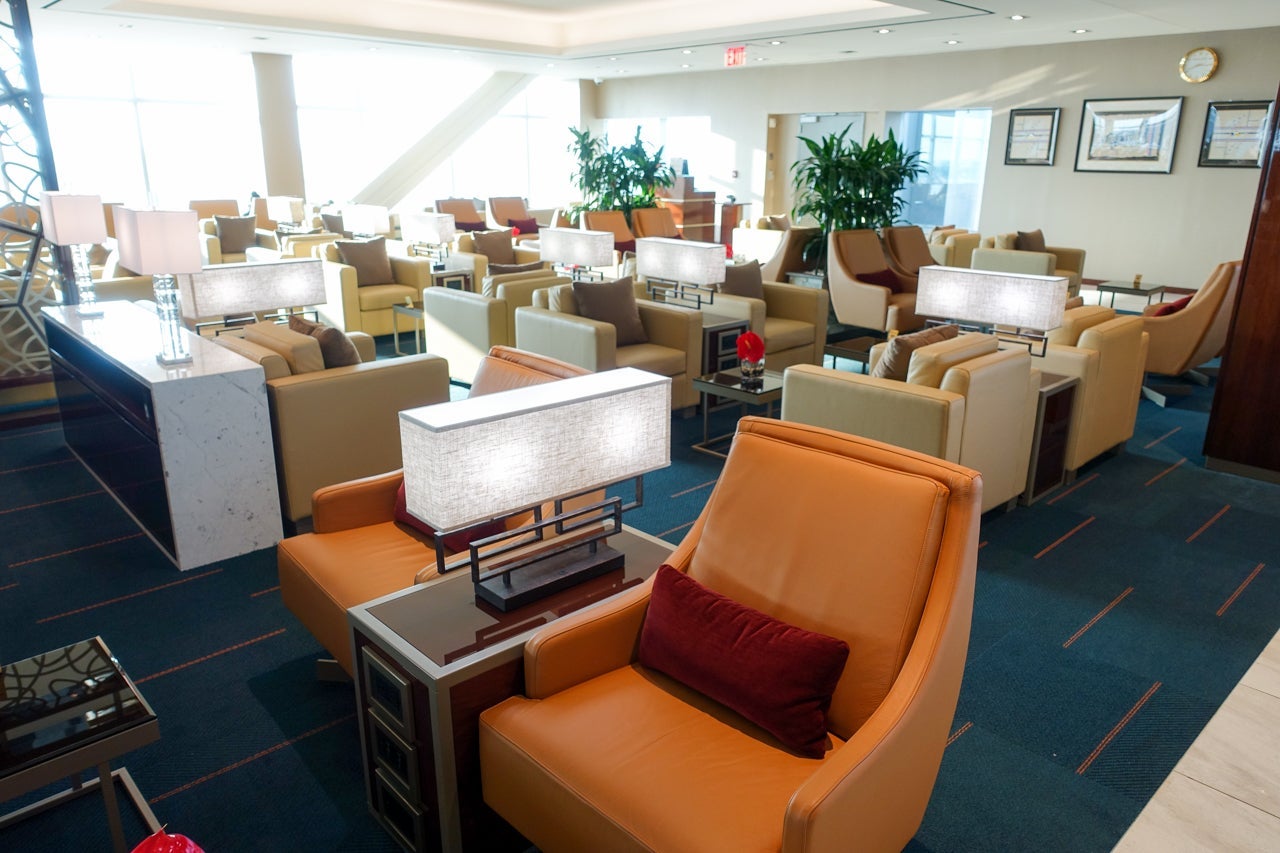 The lounge was essentially one giant open space. It measured 13,000 square feet in total and featured a variety of seating options, but it was all more or less the same, save for the dining area.