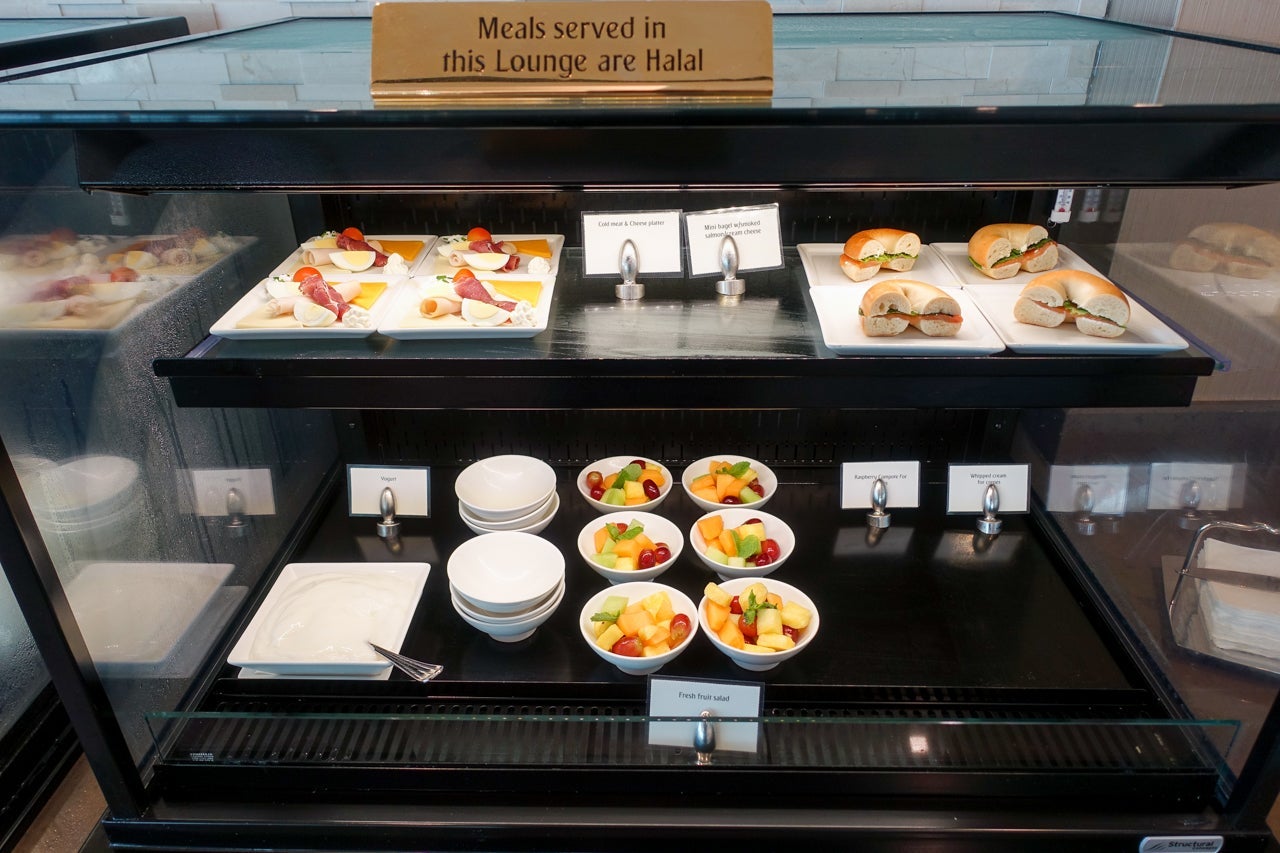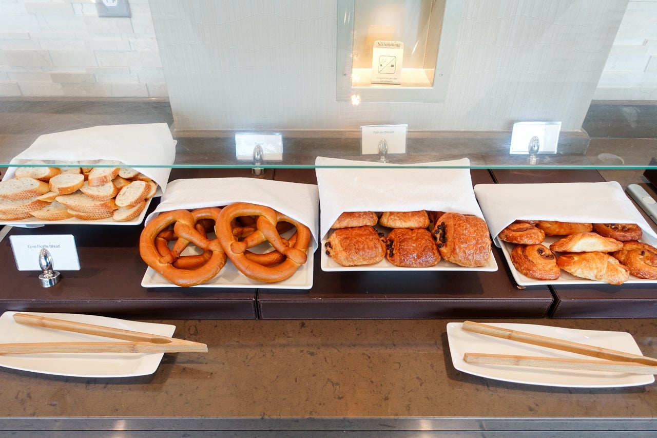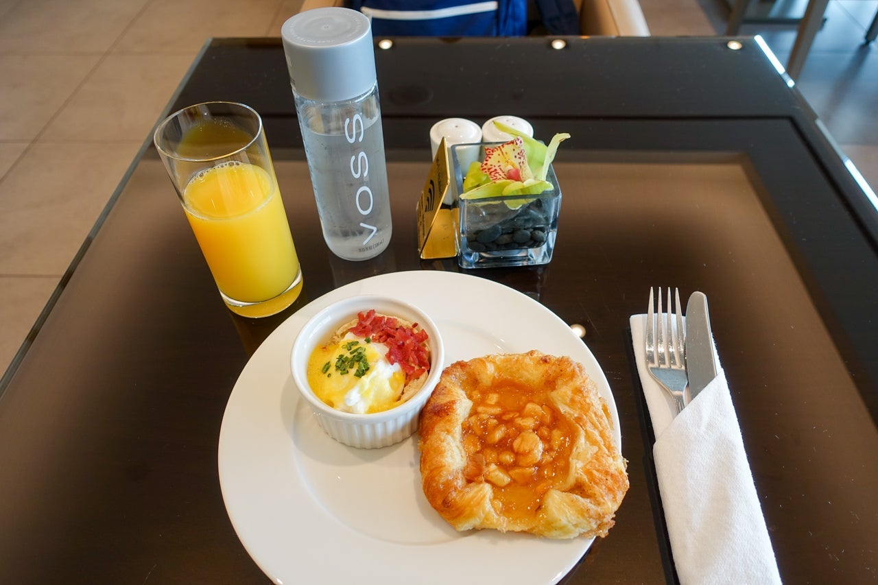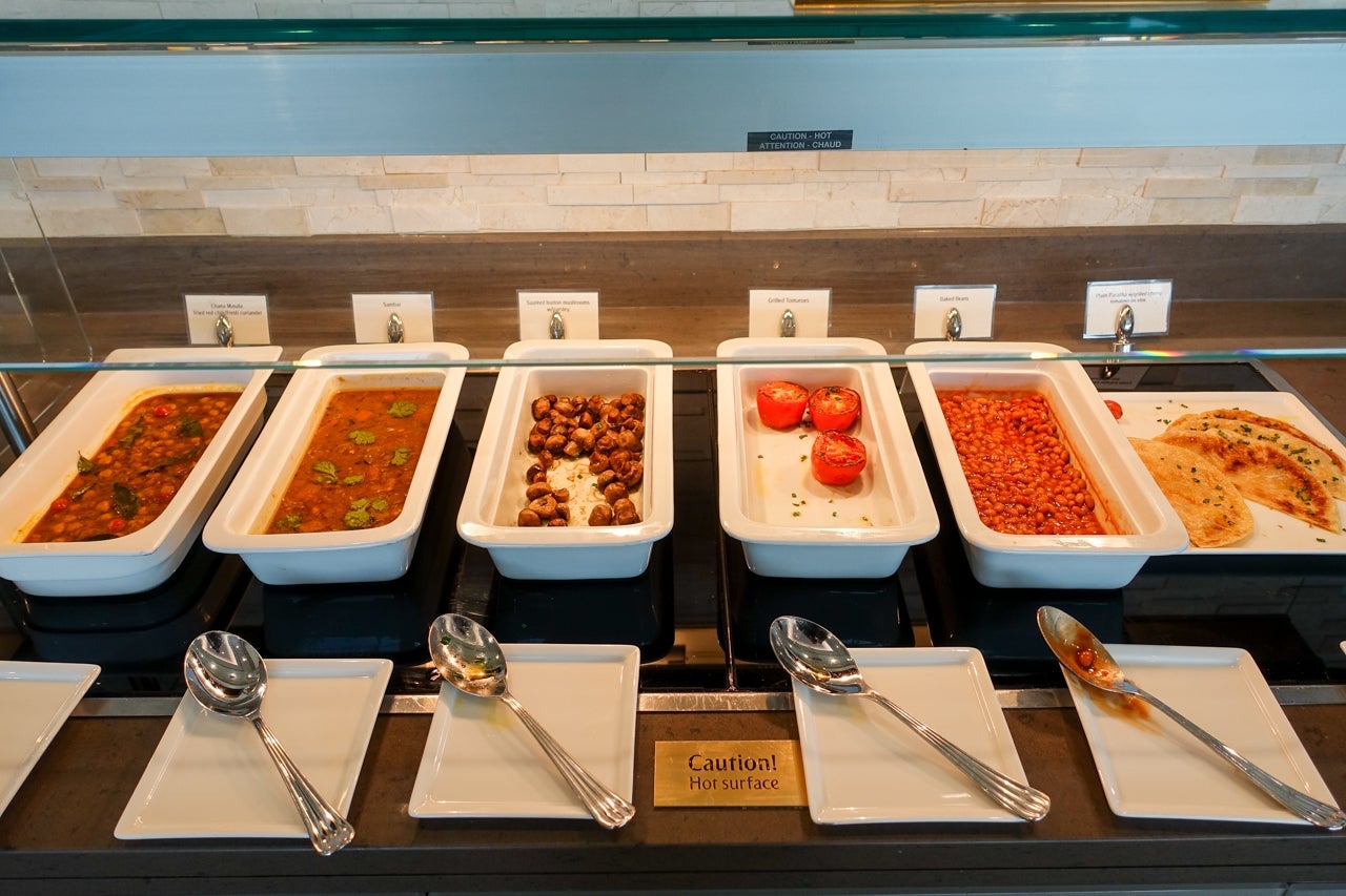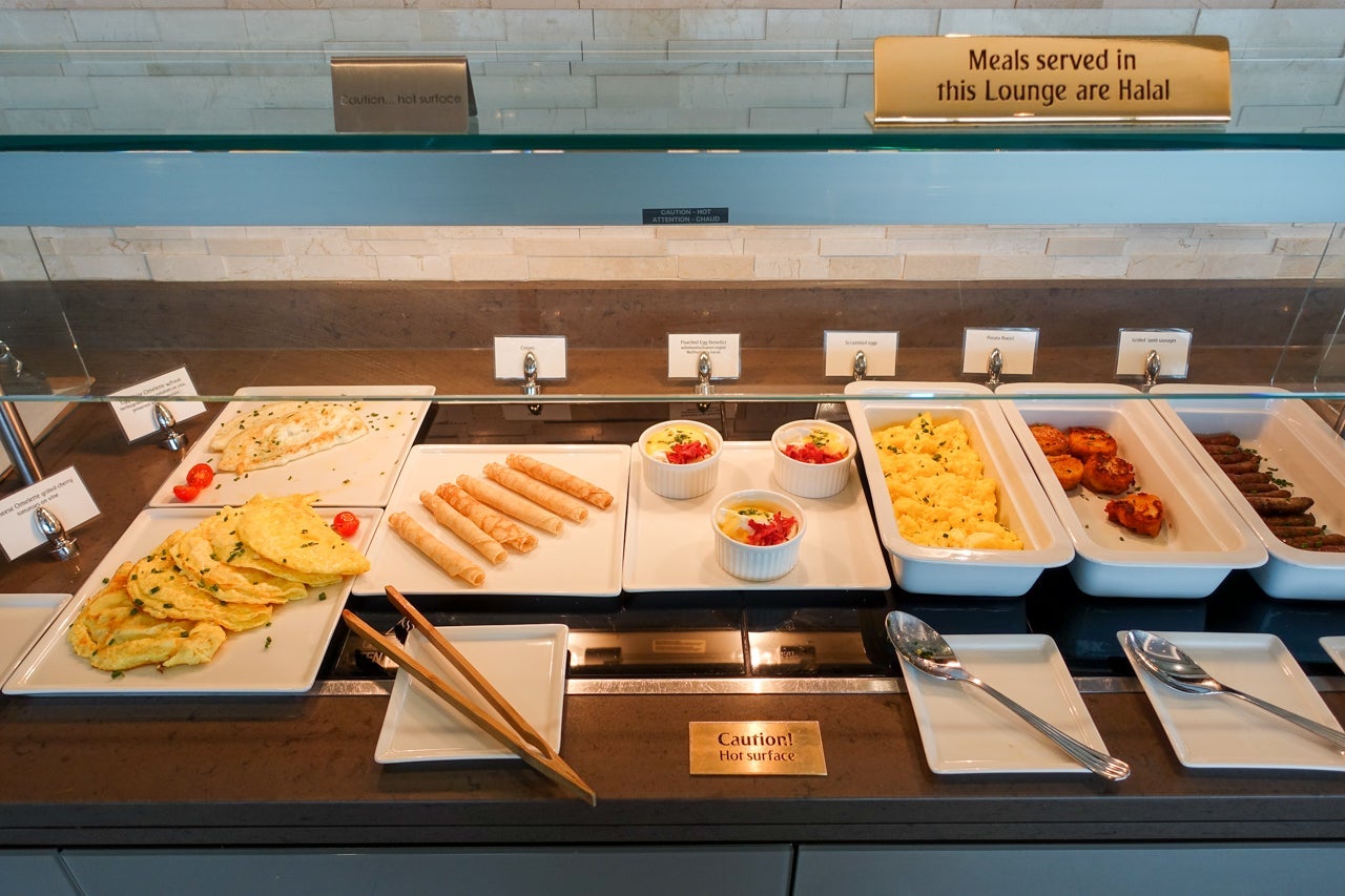 I knew I would be eating enough for a small family on board the aircraft, but I'd arrived so early (and woken up so early that morning) that I was already hungry — a meal was definitely in order. There was plenty to choose from, as the spread ranged from pastries and cold cuts to hot dishes and everything in between.