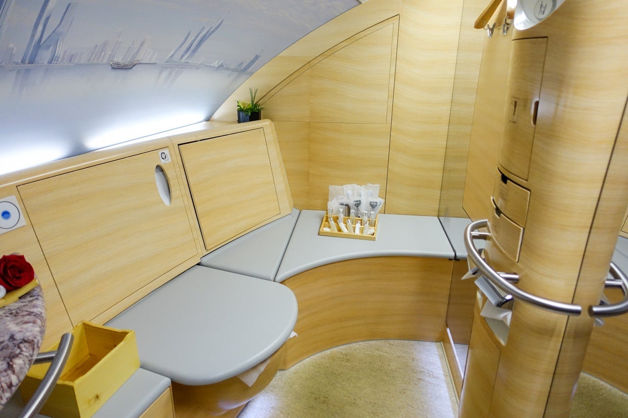 But perhaps the most famous and over-the-top amenity of all is the onboard shower available to Emirates first-class passengers. Yep, onboard showers.