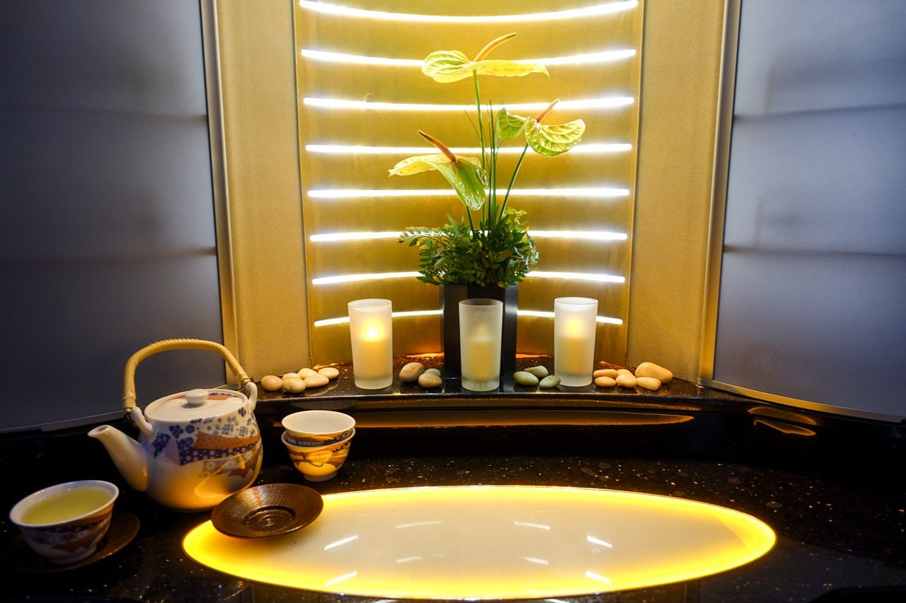 It remained a bar for most of the flight, but once we got closer to landing, it was turned into a spa-like space where tea was served.