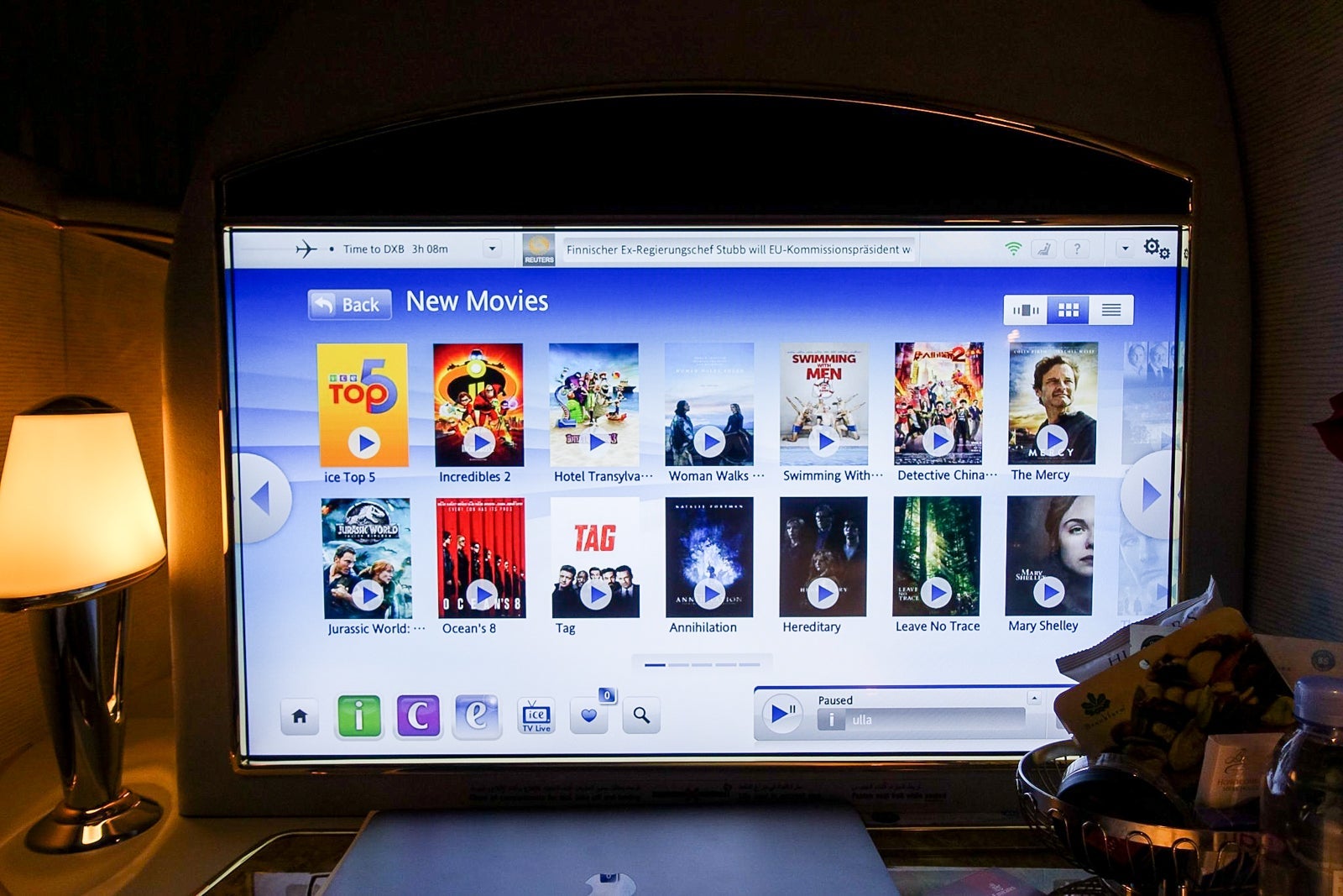 I found plenty to keep me entertained while I wasn't working or trying to sleep. I picked "Ocean's 8" for my first flick, as I have been a longtime fan of the franchise. (Though this particular film was pretty subpar, in my opinion.)
