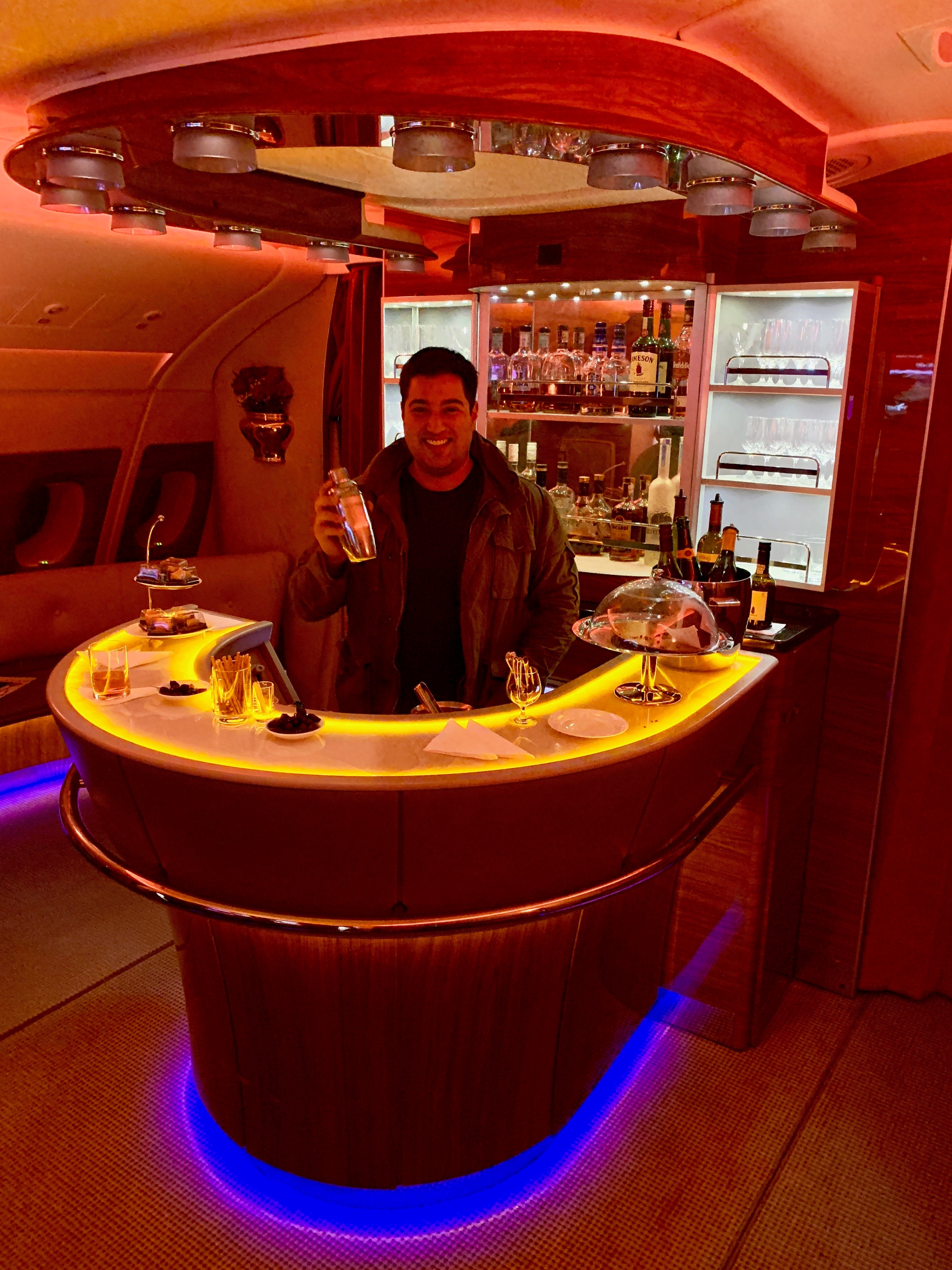 TPG and I spent quite a bit of time hanging out in the bar and talking with Emirates' famously worldly flight crew. They were all eager for us to enjoy the space to its fullest, and offered to make drinks for us to try or clear the area so we could take photos.