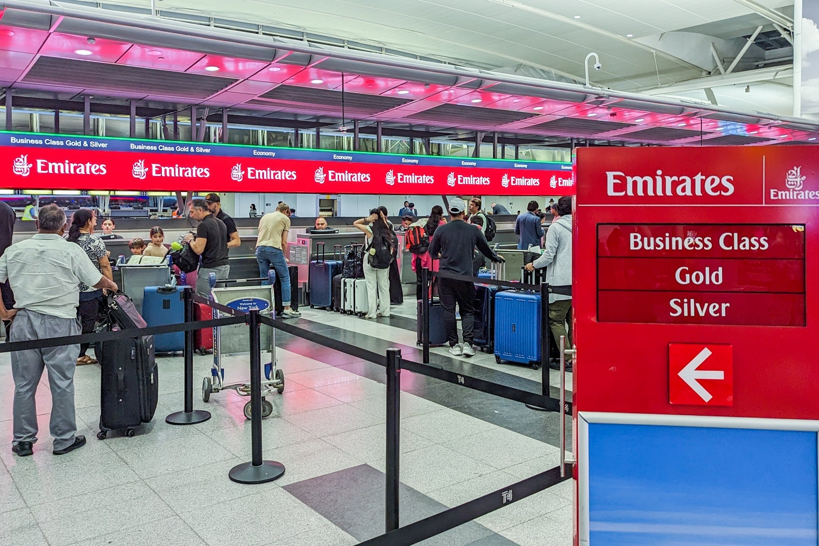 Emirates operates from Terminal 4 at JFK, which is typically a hive of activity in the evenings before a bank of flights departs to Europe.