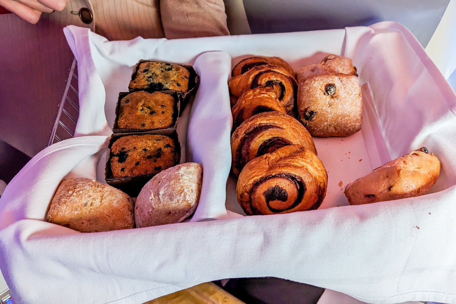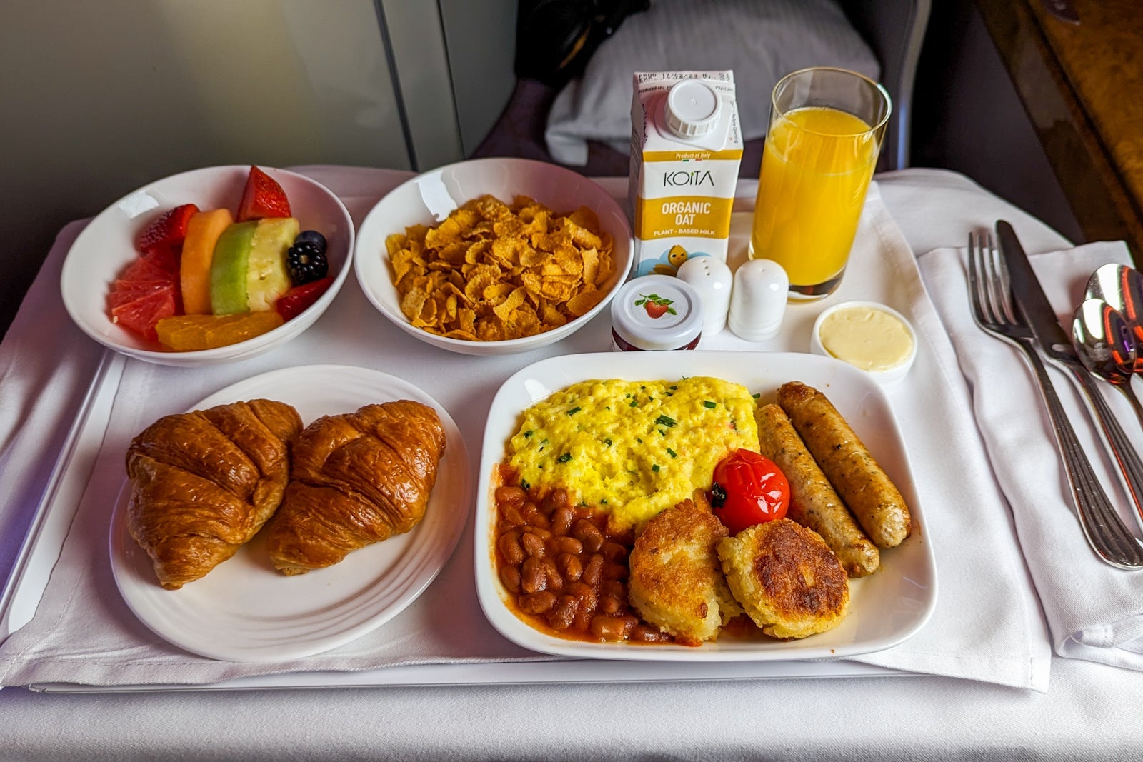 I chose the scrambled eggs with chives, served on a tray with grilled chicken sausages, rosti and braised cannellini beans. It was hot, hearty, filling and one of the better business-class cooked breakfasts I've eaten.