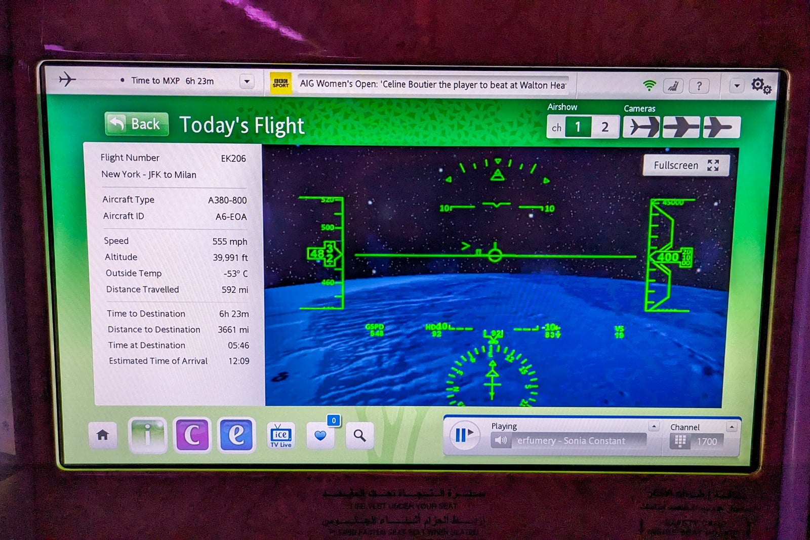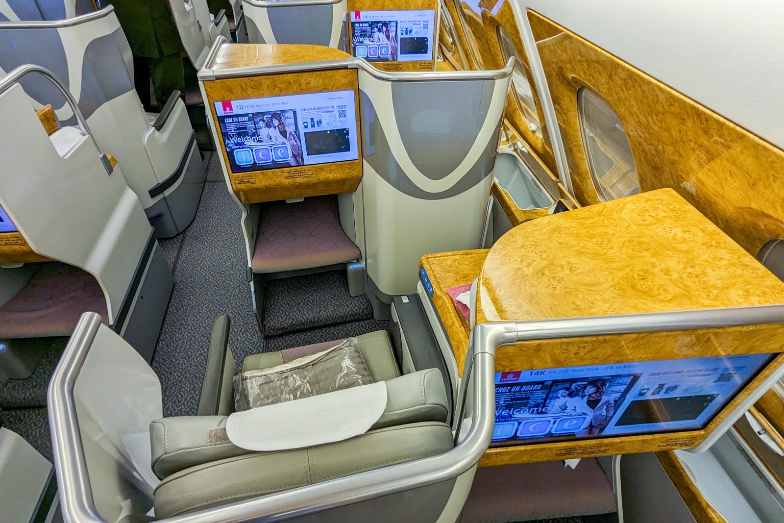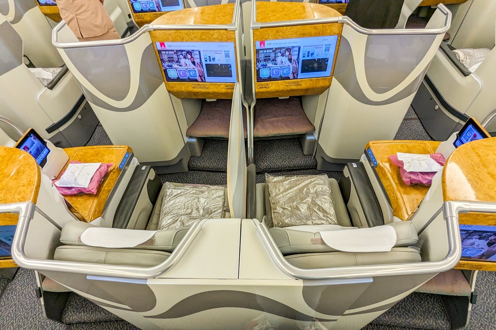 A review of Emirates business class on the Airbus A380 from New York to Milan