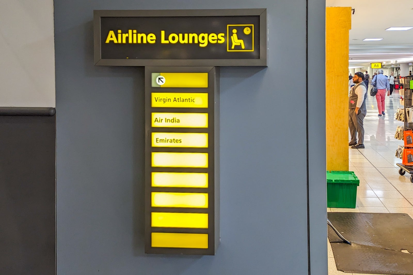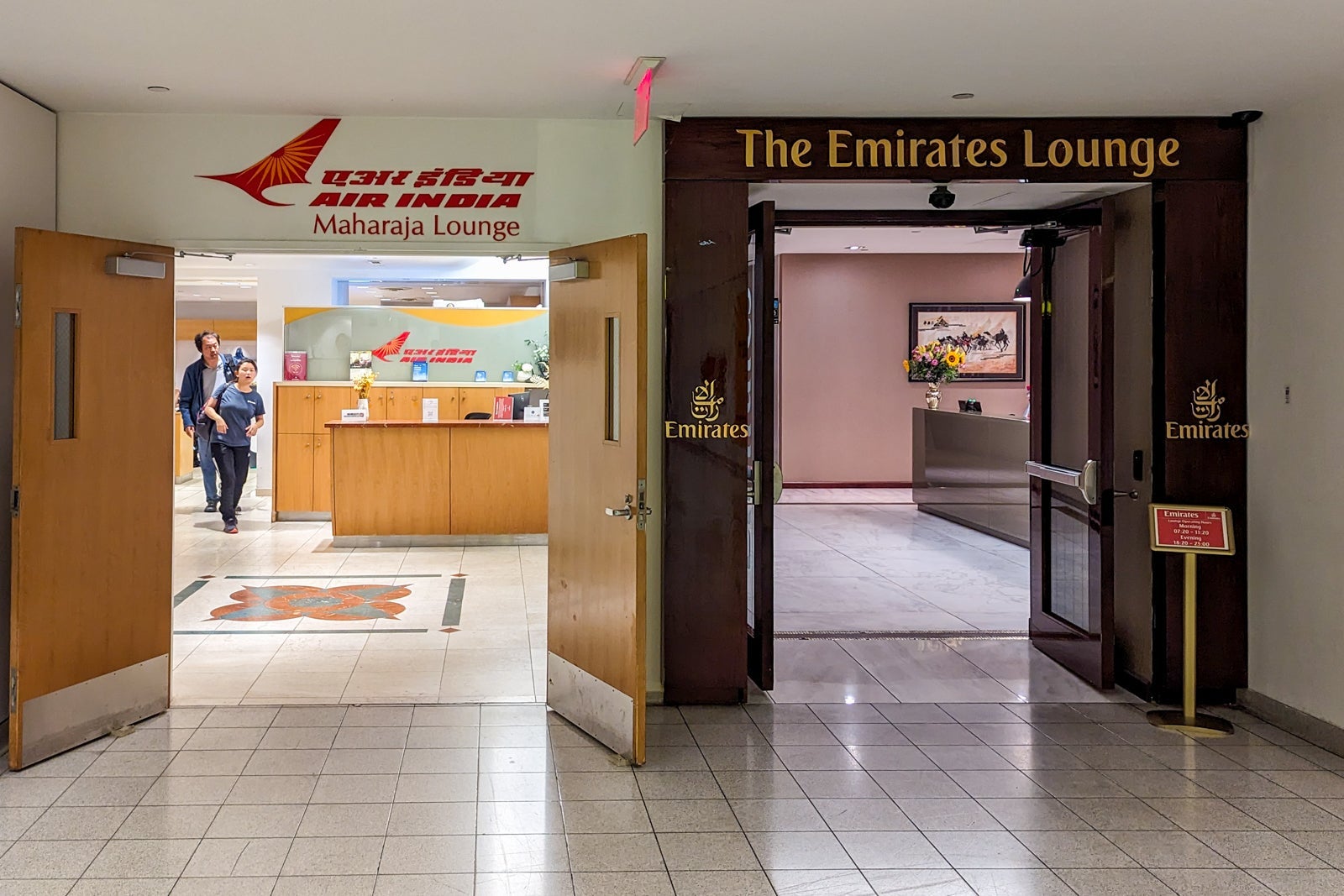 Once through security, the Emirates lounge is upstairs toward gate A6, next to the Air India lounge.