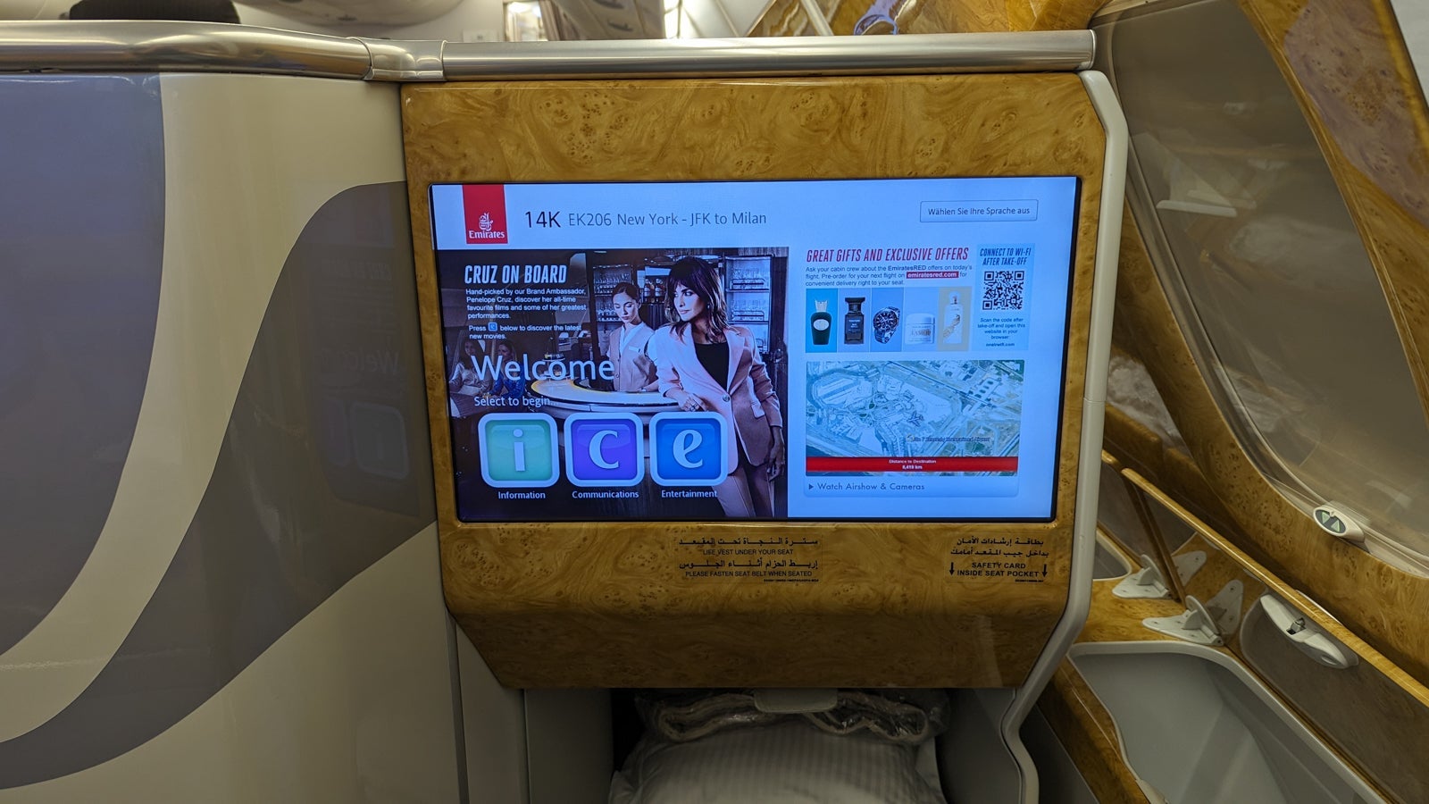 Emirates "ICE" inflight entertainment system (for information, communication and entertainment) has hundreds of entertainment options, live television, games and inflight information.