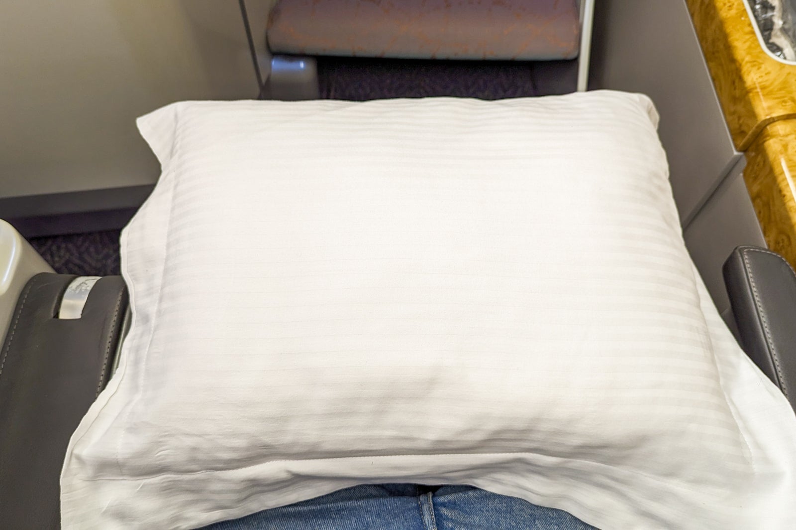 Numerous goodies were awaiting me when I boarded. A large, plush pillow and blanket were laid on the seat, and a mattress pad was placed in the storage bins below the window.