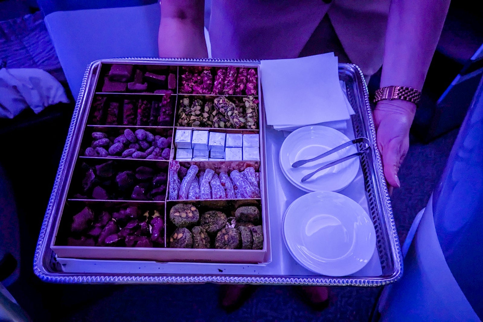 After dinner, the crew passed through the cabin, offering a range of traditional Arabic sweets.