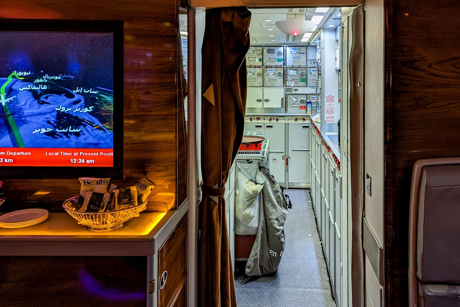 The bar was busy directly after the first meal service but quiet for much of the rest of the flight. The bartenders told me with a wink that the daytime flights to and from Scotland are the liveliest onboard bar scene in the Emirates network.