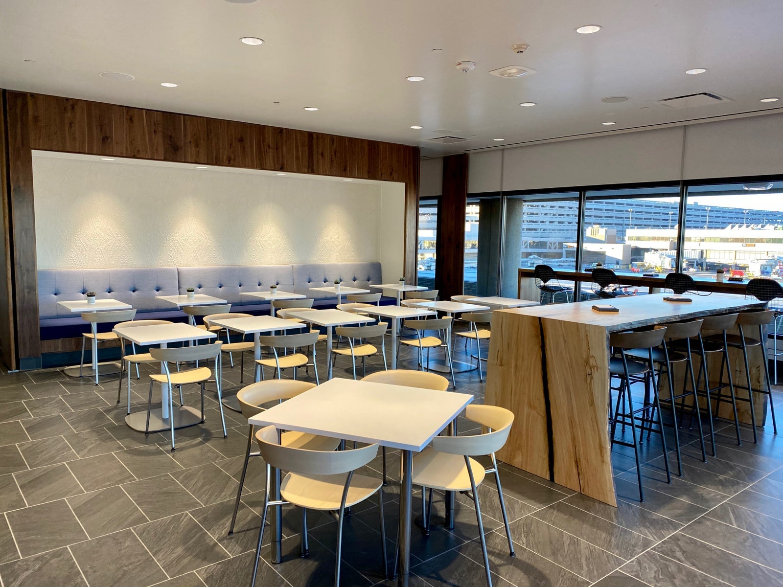 At the end of these tables is the lounge's "flex" room. This room is designed as a shared space between the Centurion and Escape lounges and will be converted into relaxation space for whichever lounge is busier.