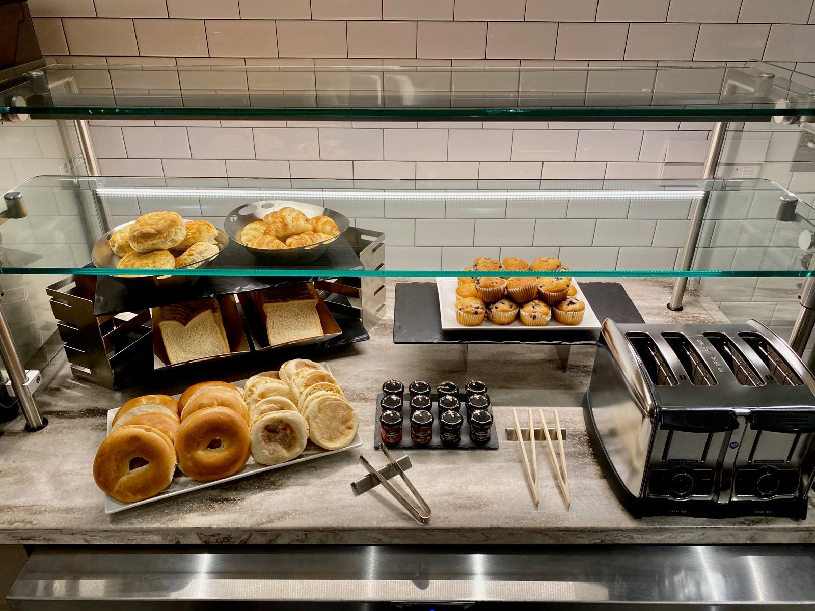 My favorite part of the food offering was the Escape Lounge signature milk-and-cookie bar. There were two jars of cookies -- chocolate chip and oatmeal raisin -- as well as a jug of milk. In my book, there's nothing wrong with milk and cookies at 5:30 a.m.