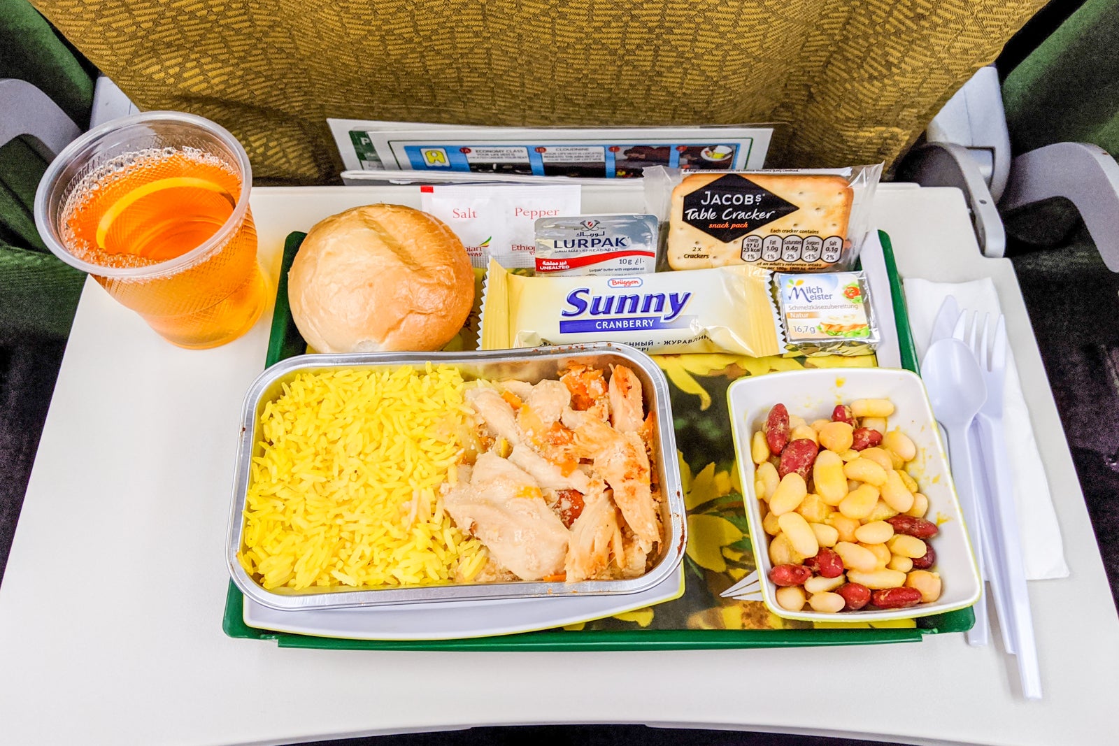 A departure meal and arrival meal were served in both directions. Although this review is generally focused on the daytime flight to Newark, I'll describe all four meals I received on Ethiopian in this section.