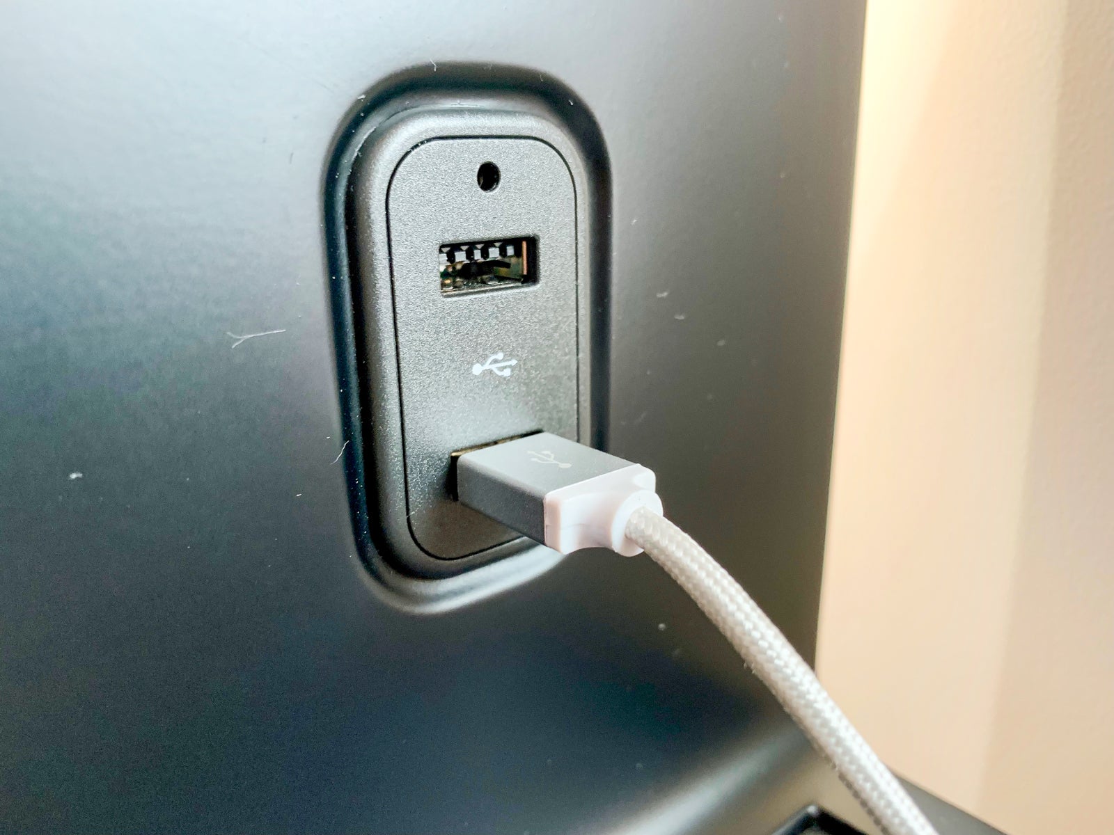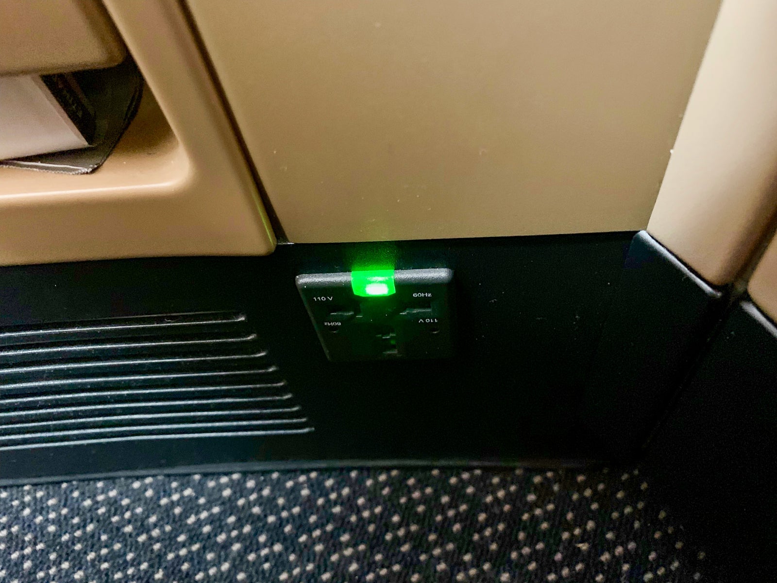 The seat offered two power sources: one standard 110V universal outlet and one USB port for charging smaller devices.