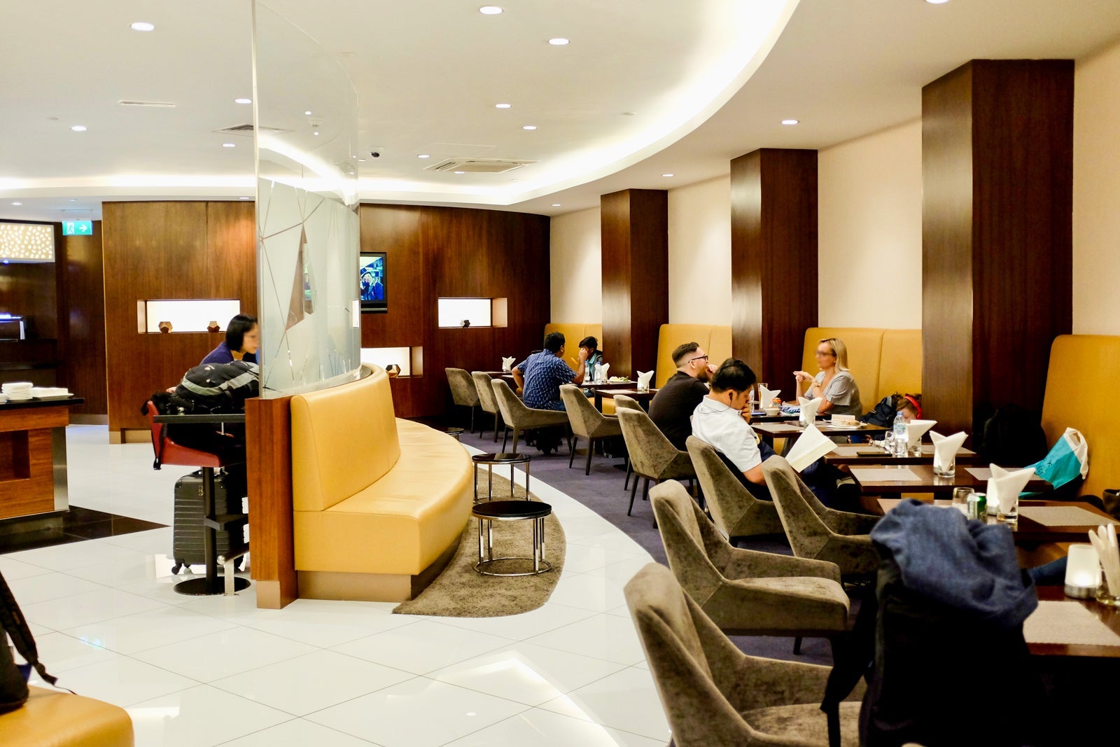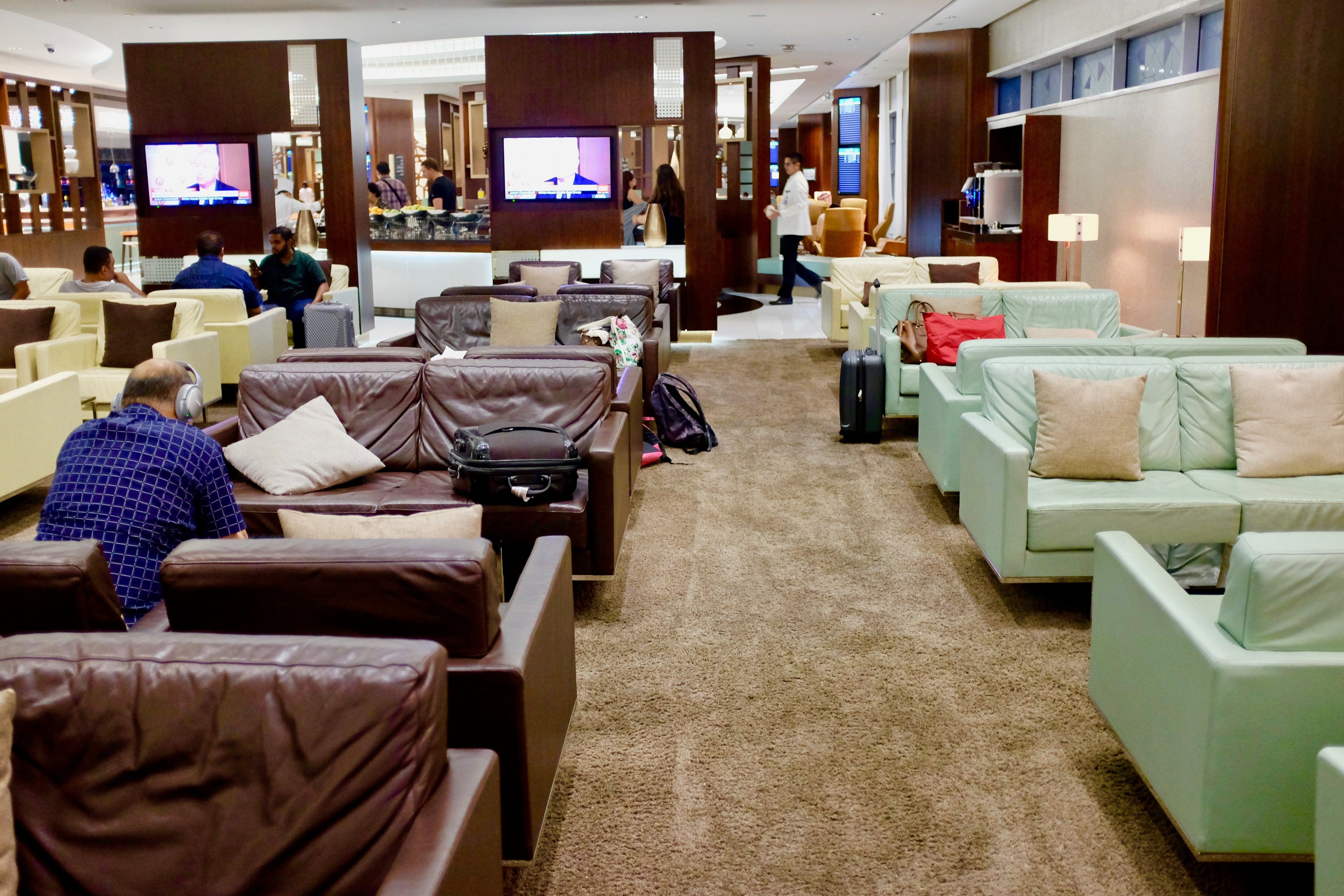 In all, I spent about three hours in the Terminal 3 lounge, and the time really flew by. Lounge attendants made rounds every waking minute, taking drink orders and offering refills as needed. Even later in the night, once the lounge began to fill up, seating was never an issue, and the service felt just as dedicated as before.