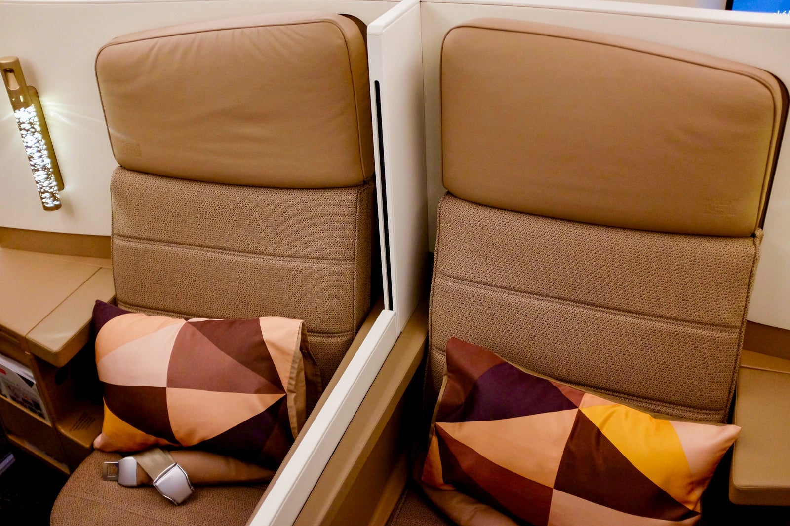 Etihad's seats had a strikingly similar footprint to Qatar's Qsuite (sans a closing door). The seats were extraordinarily comfortable and spacious. I found it amazing that on the same aircraft type I had flown to China and back just two weeks before the seats could feel so much wider.