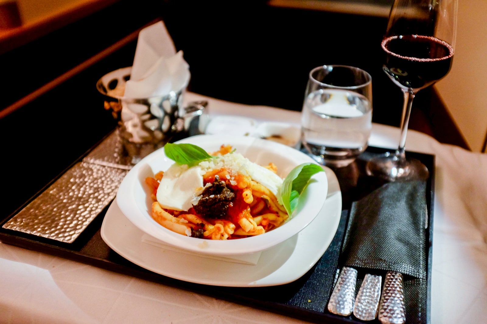 I usually jump at the chance to try the food of an airline's home country when flying, but this time I went with the vegetarian pasta. It was a simple plate but really hit the spot -- I'd say it was on par with any decent Italian restaurant.