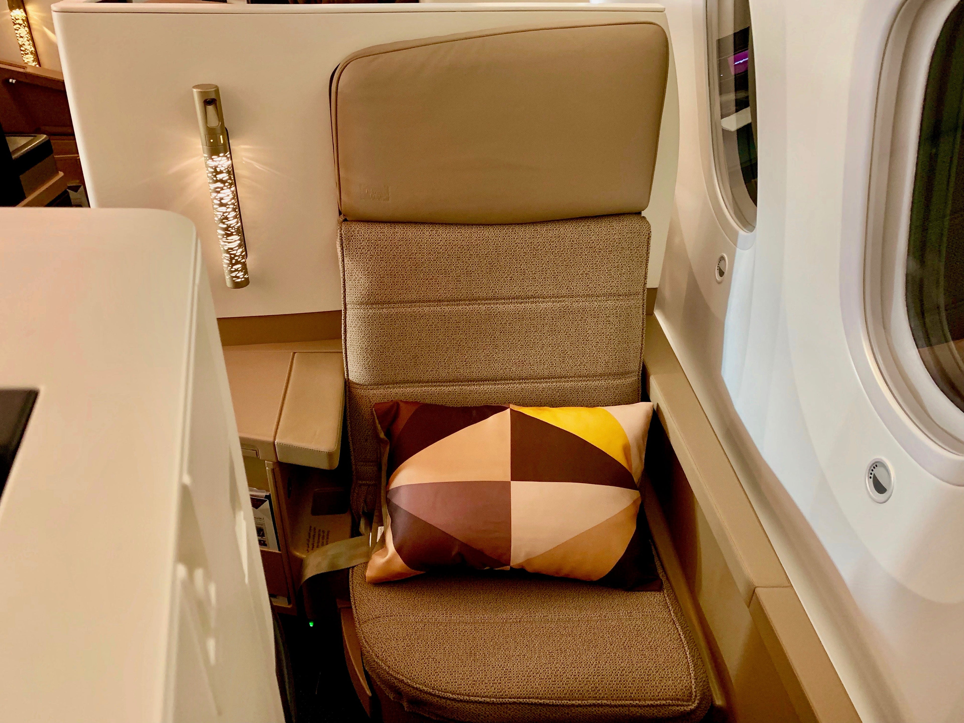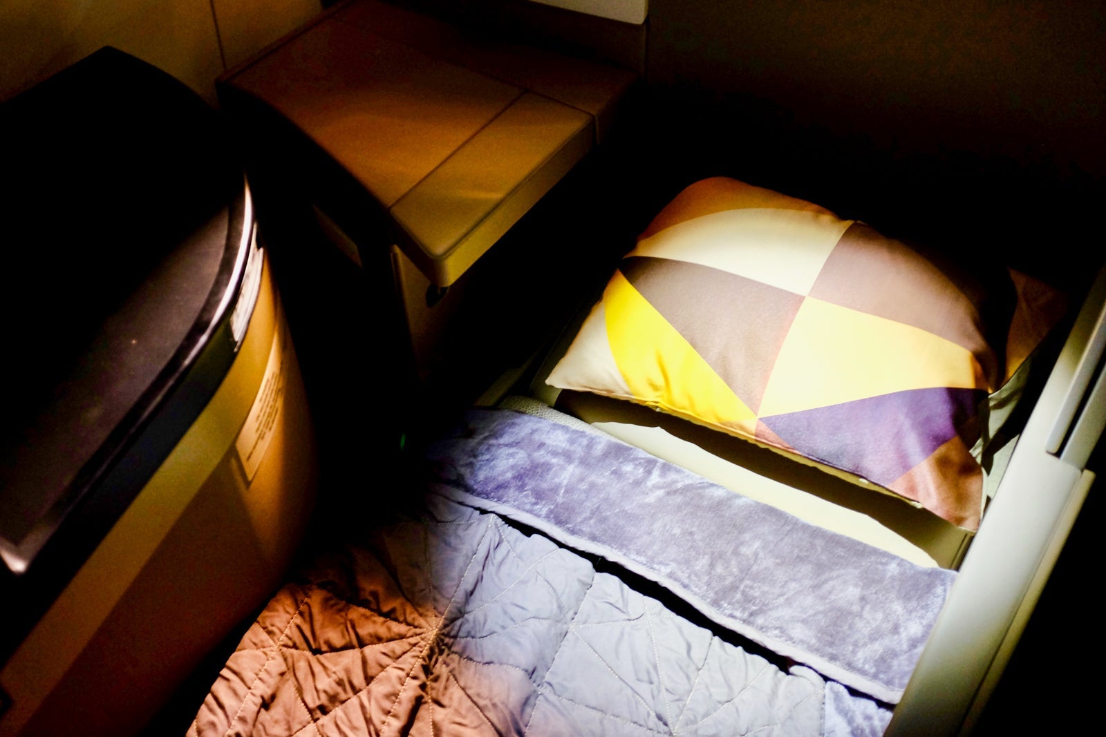 Though I thought it was intended to be decorative, the pillow waiting on my seat upon boarding was actually the only pillow provided on the flight. It didn't look it, but it was quite comfortable for sleeping.