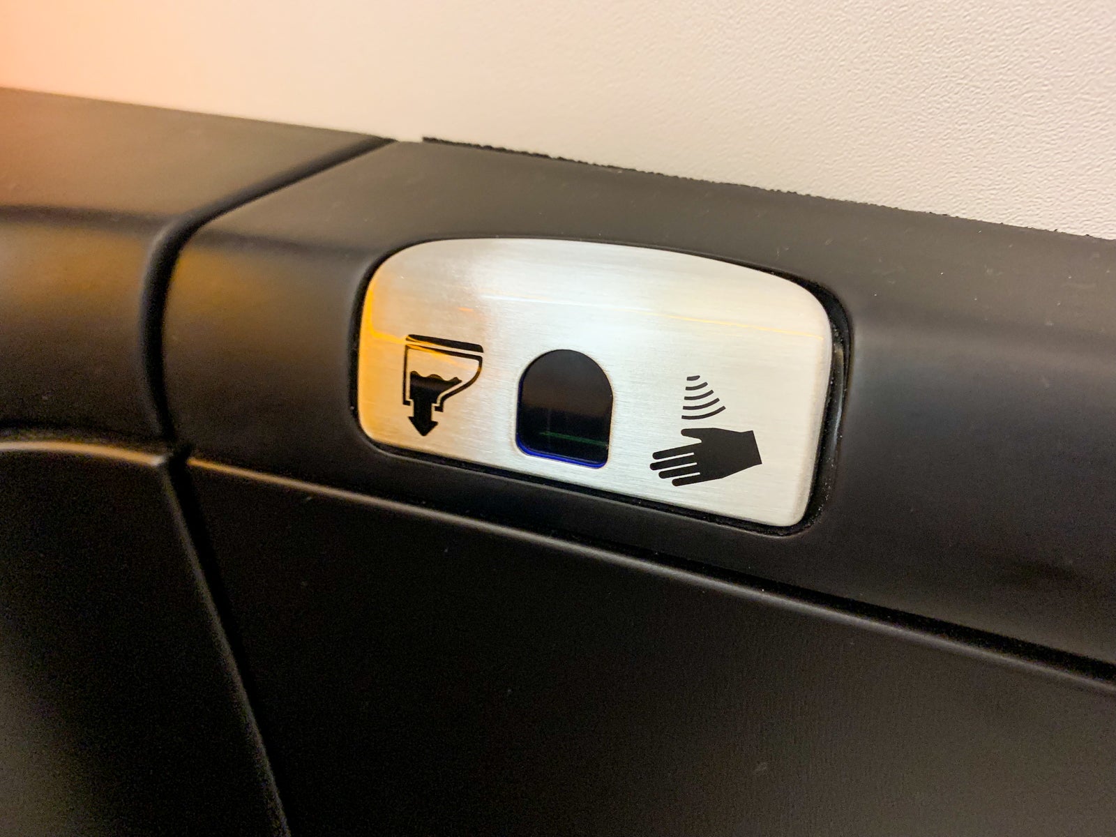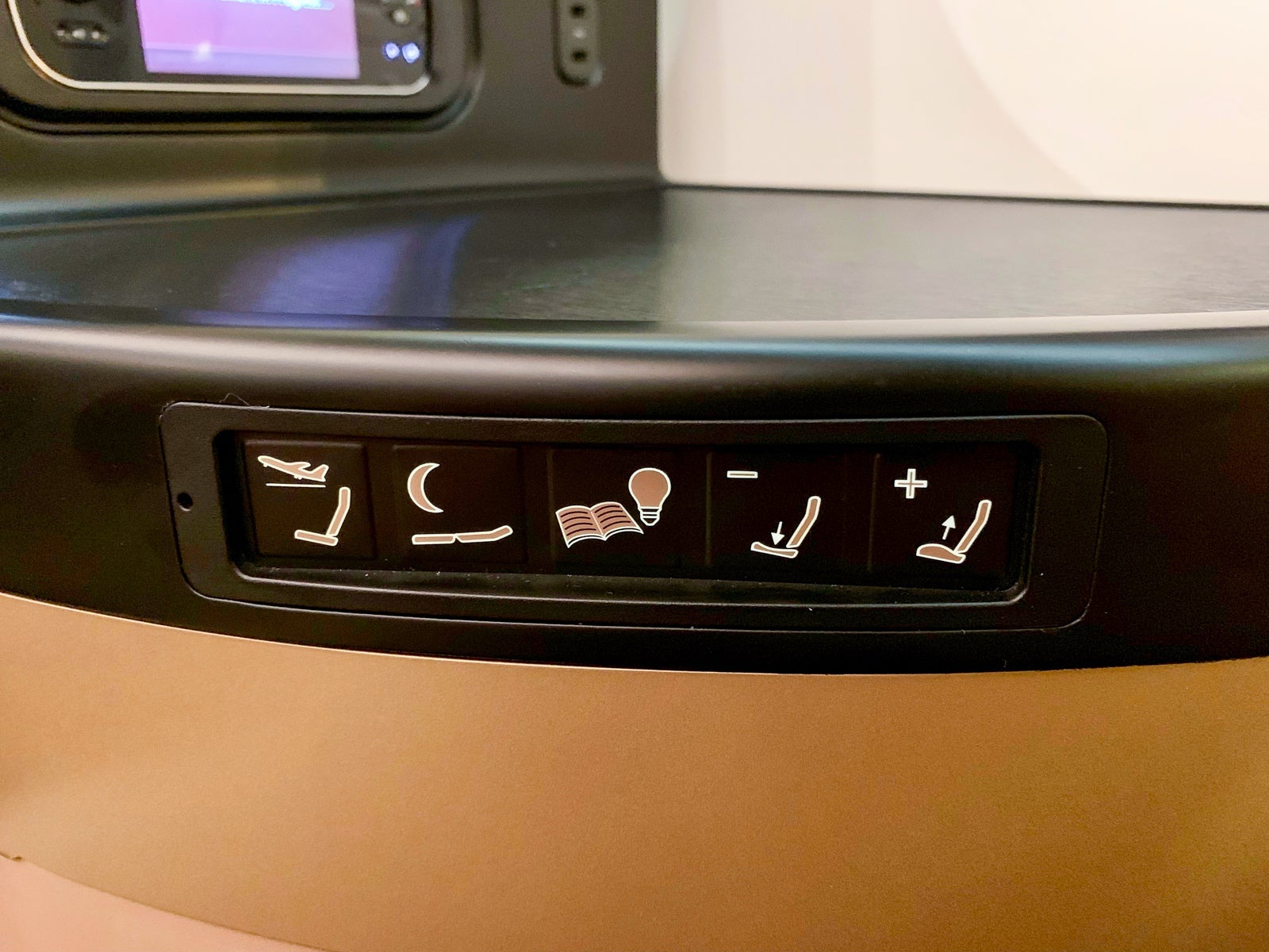 Along the edge of the table shelf was a smaller seat-control strip. It offered just a few of the essential functions to easily reach in bed mode.