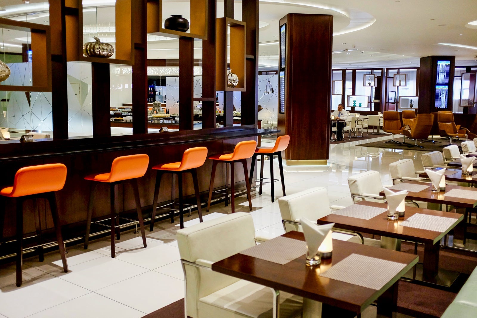 I made my way over to Terminal 1 about an hour and half prior to my scheduled departure. It took me about 15 minutes to reach the concourse, at which point I decided to pop my head into the Etihad satellite lounge the agent had referred to earlier. It was definitely smaller than its Terminal 3 counterpart but offered identical food and beverages.