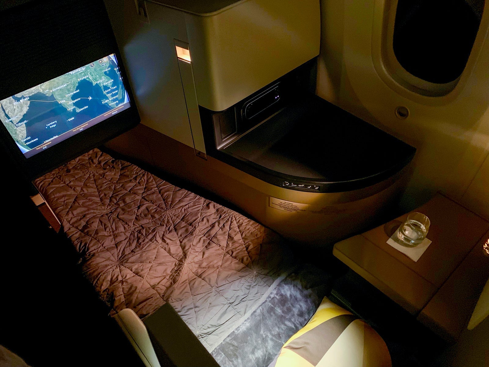 The time-zone-hopping kept me wide awake for most of the overnight flight, but I was able to catch about an hour of shut-eye between meals.