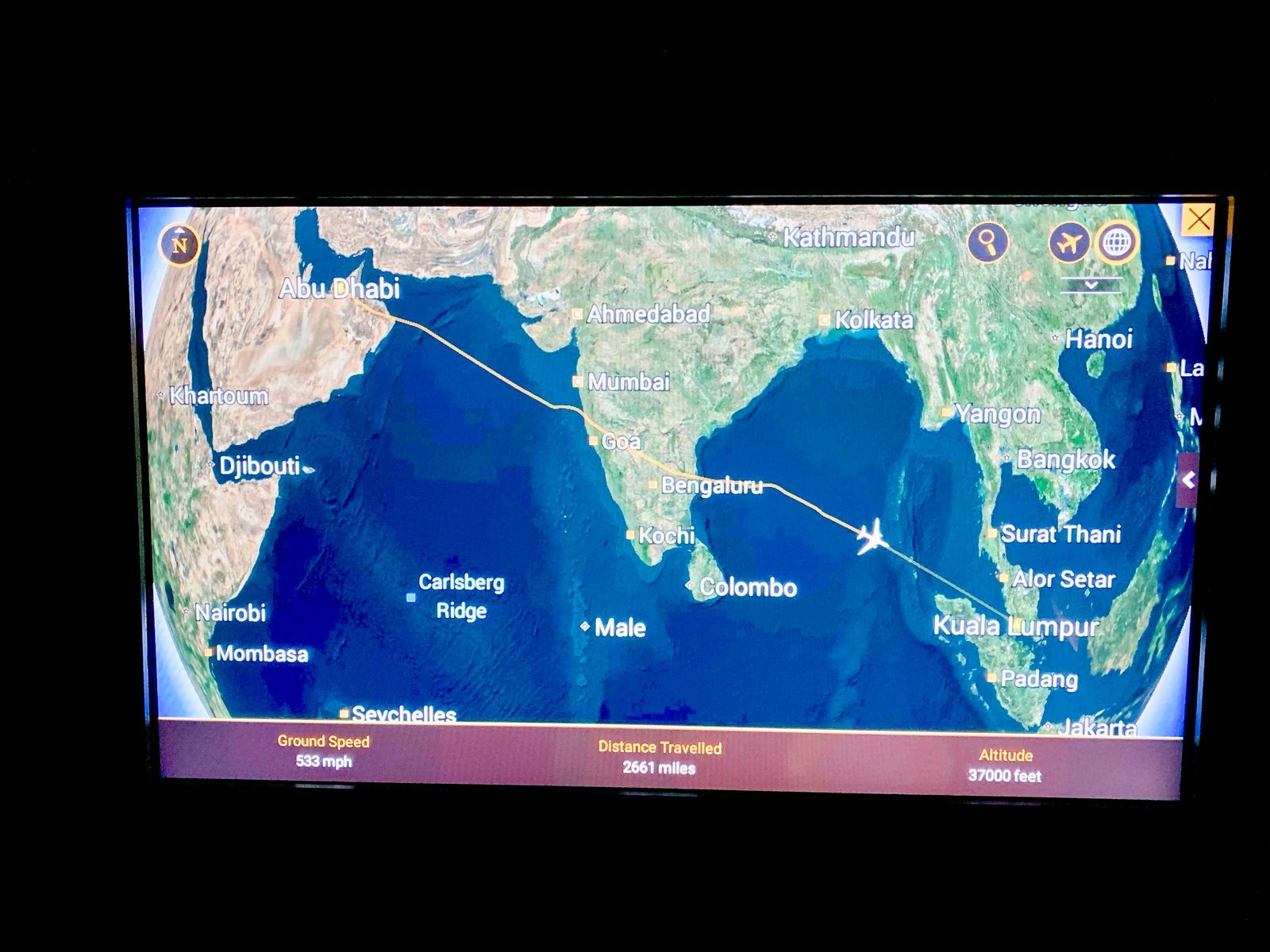 The flight tracker was great for tracking our progress across the Indian Ocean.