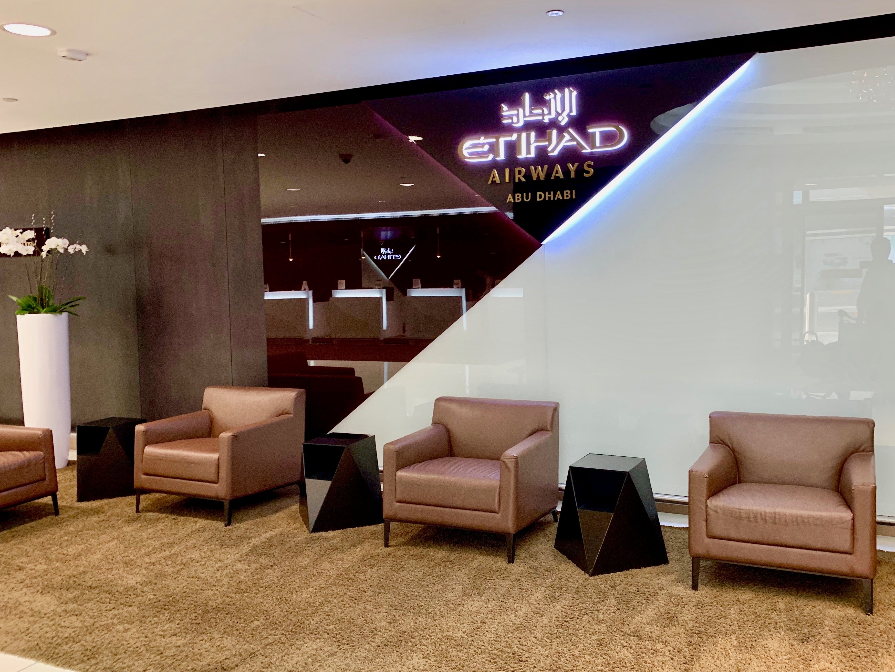 I felt like I was stepping into a hotel lobby rather than an airport. The space featured Etihad's signature dark-wood paneling and comfortable seating areas.
