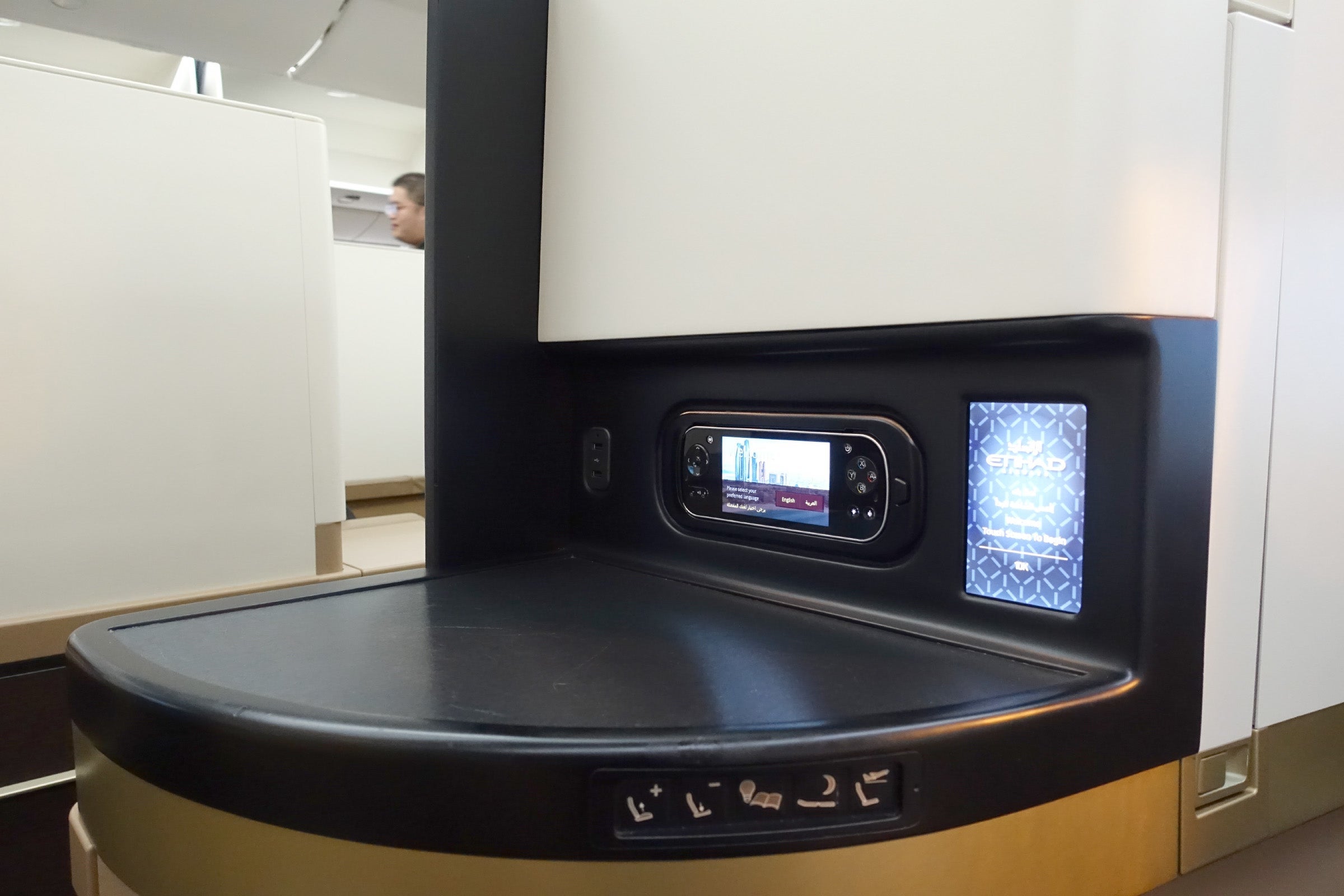 After that ever-so-brief economy visit, I made my way back to 10K. While this "Business Studio" lacks the sliding door you'll find on Qatar, it's clear that Etihad's design team also paid close attention to detail while building out the seat — those wall fixtures are especially slick, in my opinion.