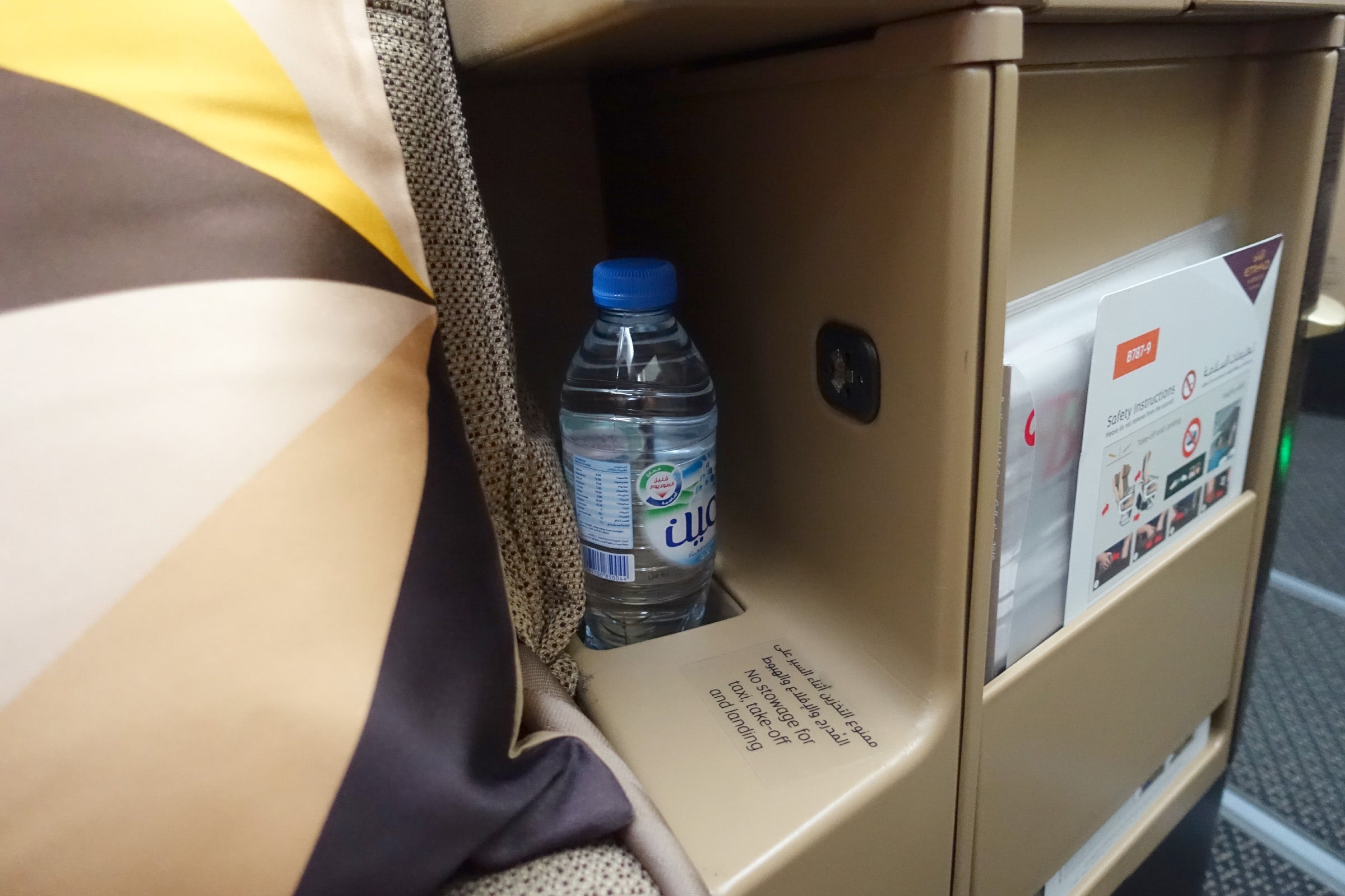 The side table also reminded me of Qatar's, although it was starting to get scratched up here, even though the plane was fairly new.