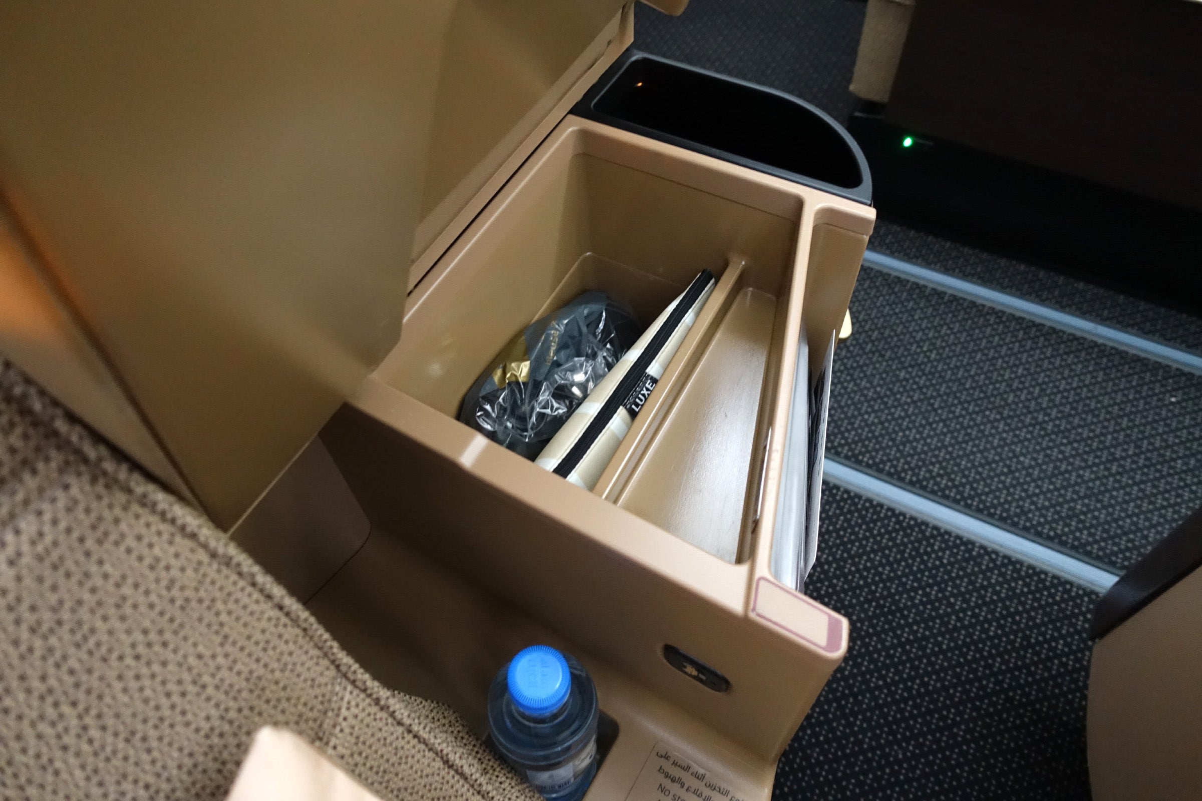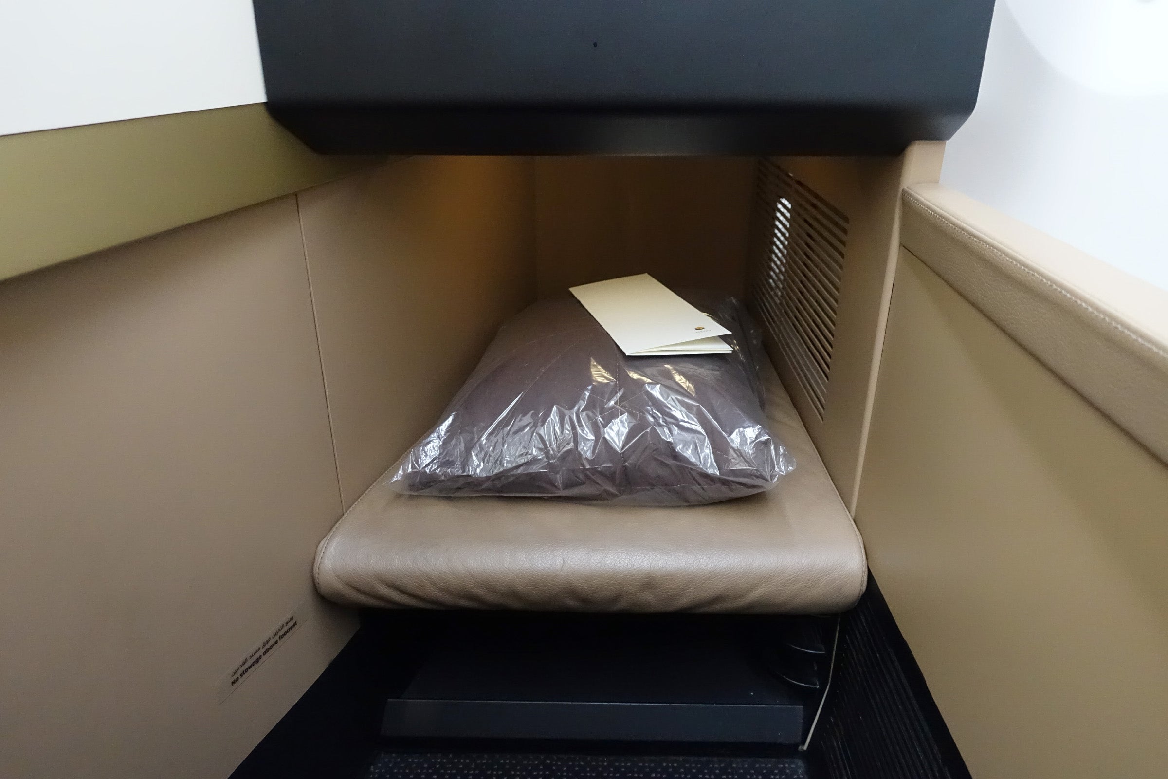 Even though I wasn't in a bulkhead seat, the footwell was comfortably wide. There was a small storage compartment (tall enough for a pair of shoes, perhaps) underneath.
