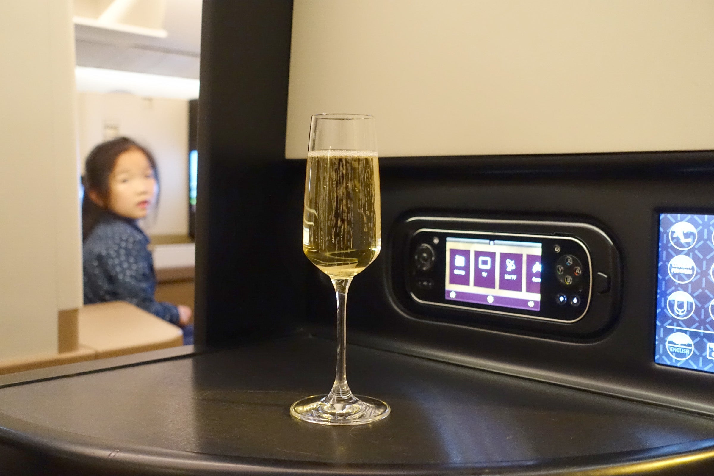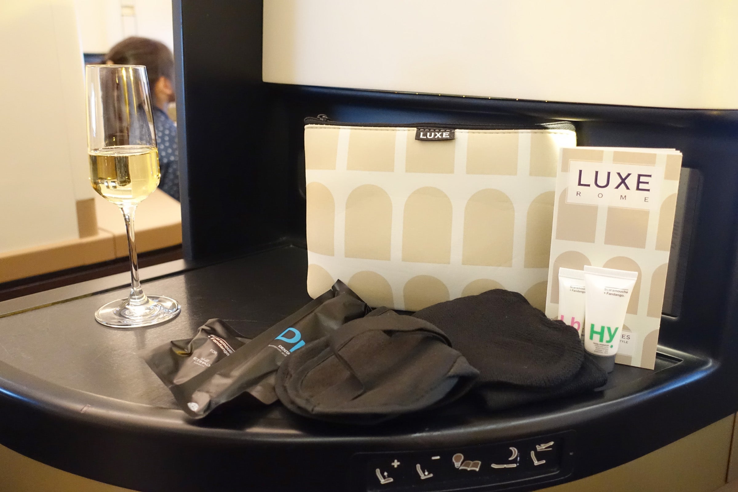 I was promptly offered a beverage just after boarding. Etihad serves Piper-Heidsieck Brut Cuvee in business class, which retails for about $40 on the ground — a respectable biz-class Champagne.