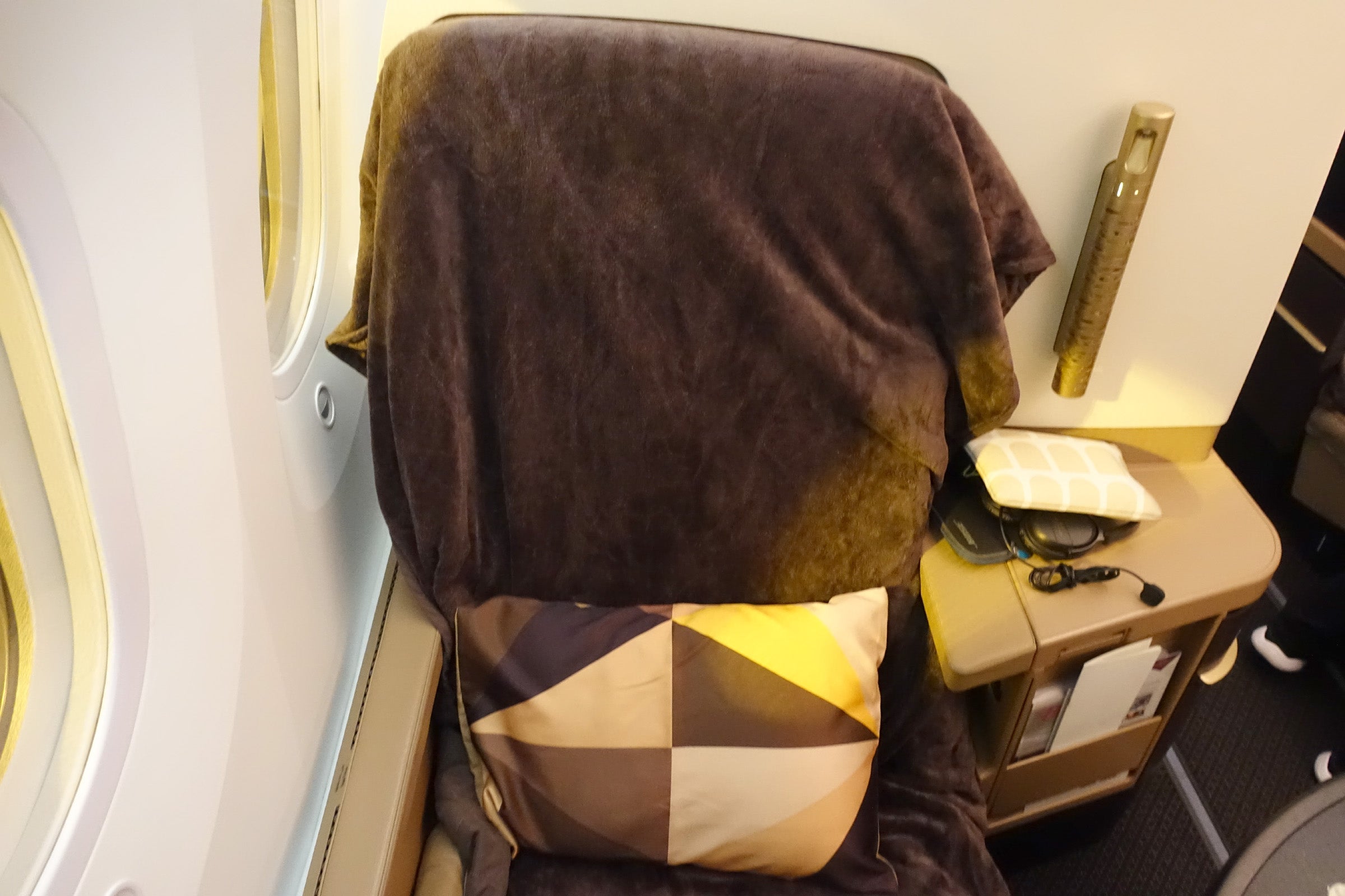 Etihad offers very soft comforters, along with a small pillow. I would have loved to have a mattress cover, too, but the comforter from 11H did the trick in a pinch!