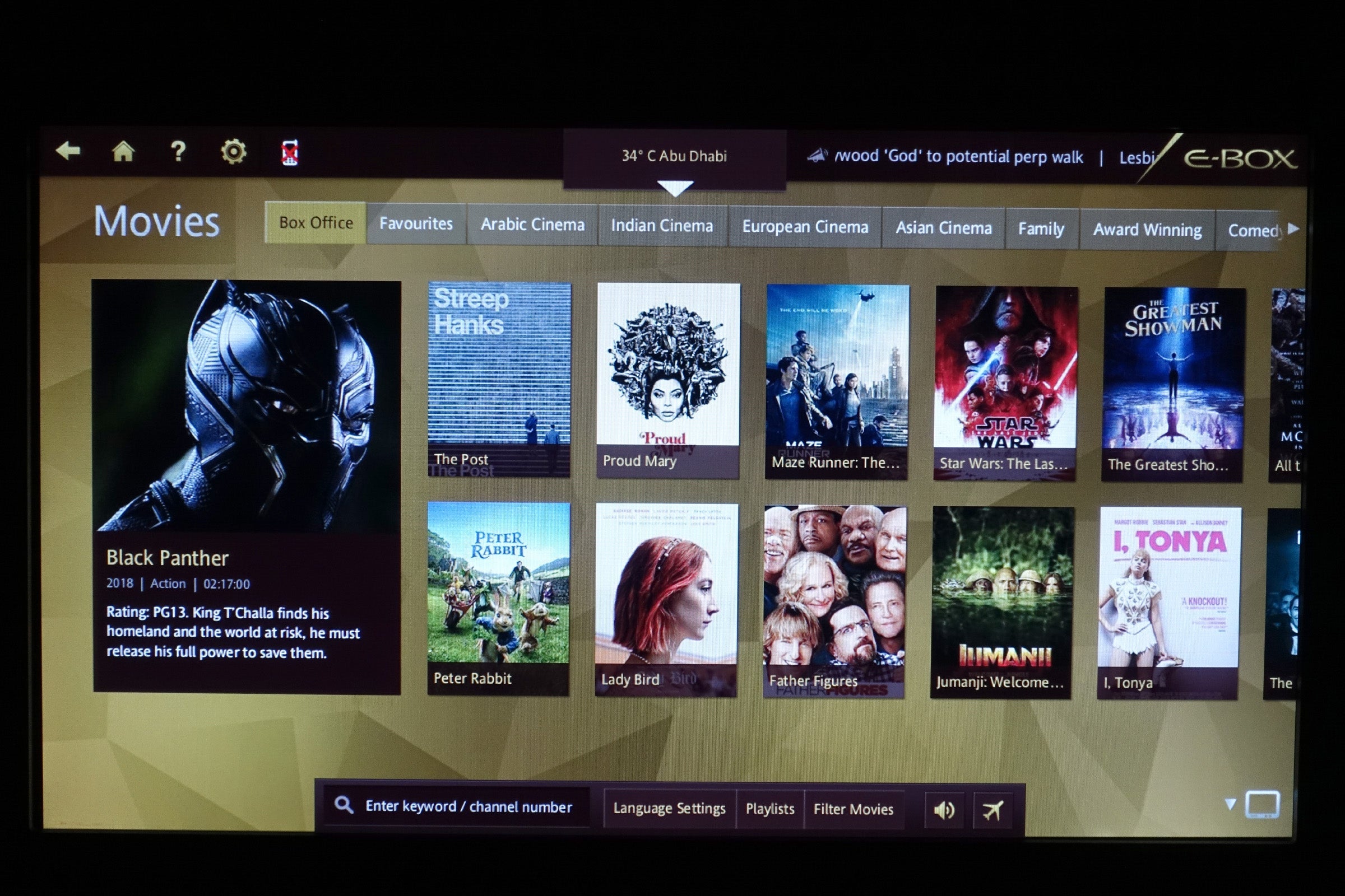While not quite as comprehensive as its UAE counterpart Emirates, Etihad offers a very good selection of content, ranging from new releases to Indian and Asian films. There's something for everyone.