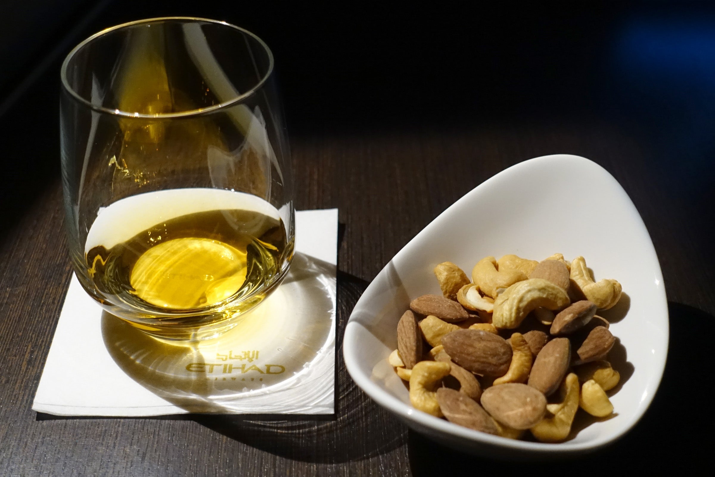 After takeoff, I ordered a glass of Scotch — Glenlivet Master Distiller's Reserve. It was one of the better Scotches I've had in business class. I also appreciated that it was served quickly, about 15 minutes after takeoff. Score one for Etihad!