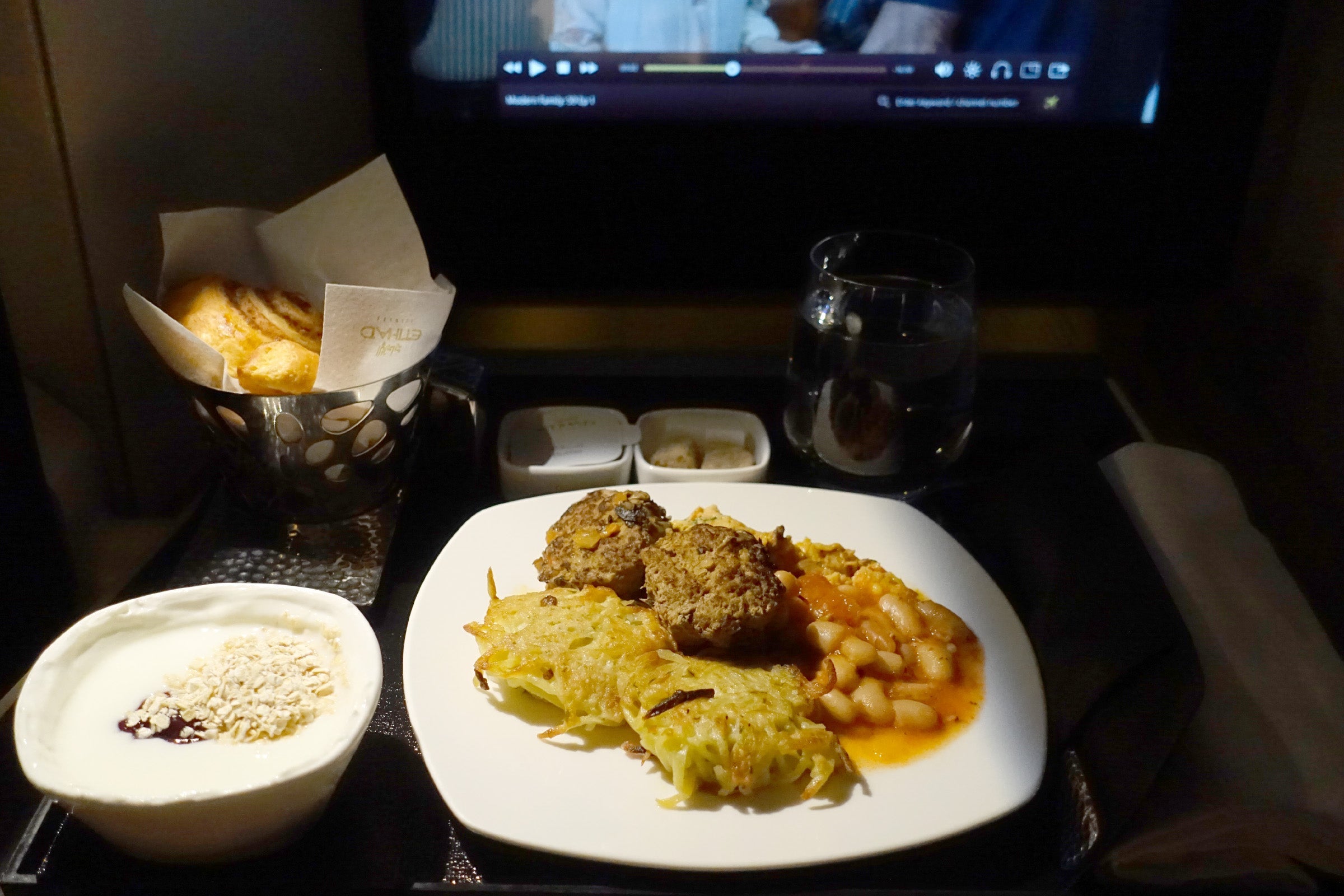 Breakfast was the main event. After departure, a flight attendant asked if I wanted to be woken up for the meal, and I said yes. They followed through on that request, then served my breakfast an hour and 20 minutes before landing.