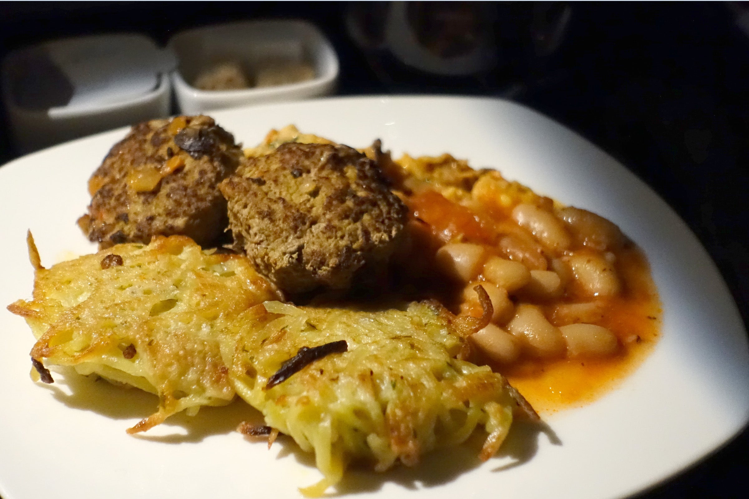 I requested the shakshouka, which on the ground is typically served baked in a small portioned-out pan. The presentation was significantly different in the air, and I was a bit disappointed by the flavor. Given the choice again, I probably would have gone with the omelette or waffles, instead.