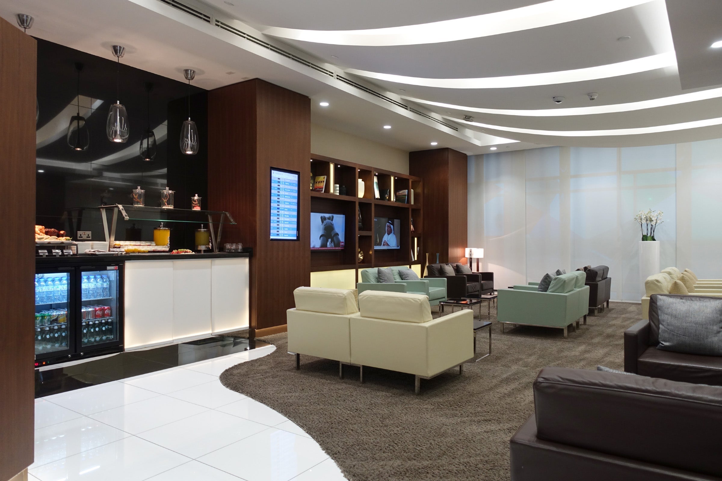 The lounge was completely empty, and offered a small selection of breakfast items, even though it was after sunrise during Ramadan.