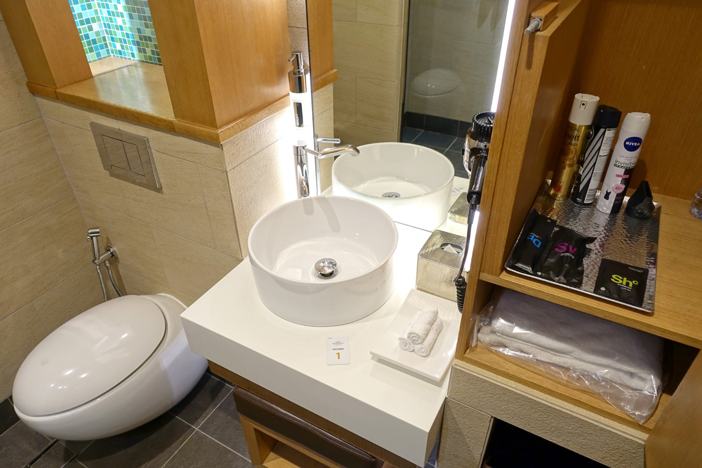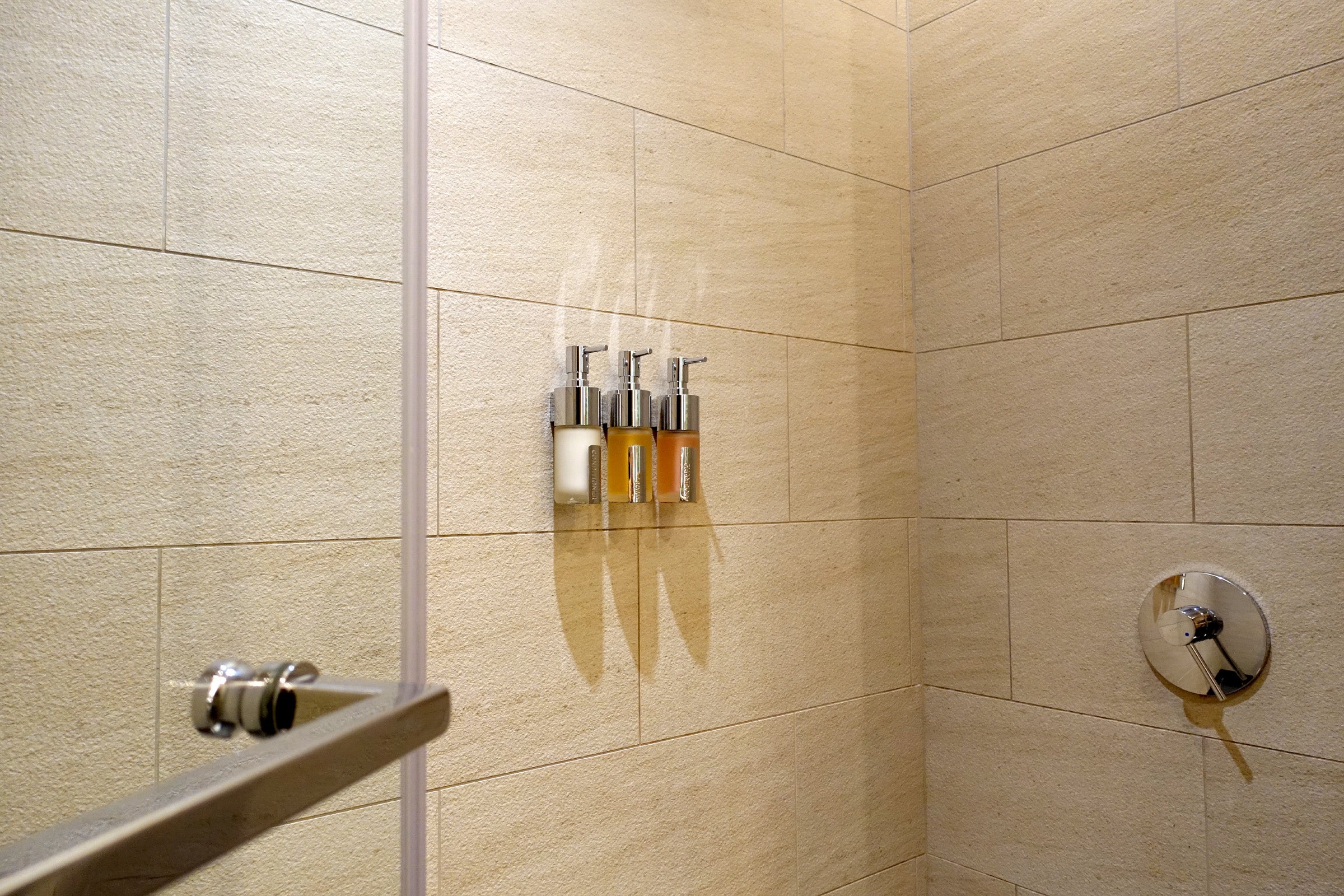I was able to get a shower room right away — mine was well-equipped, with a dental kit, fresh towels, hair spray and other products.