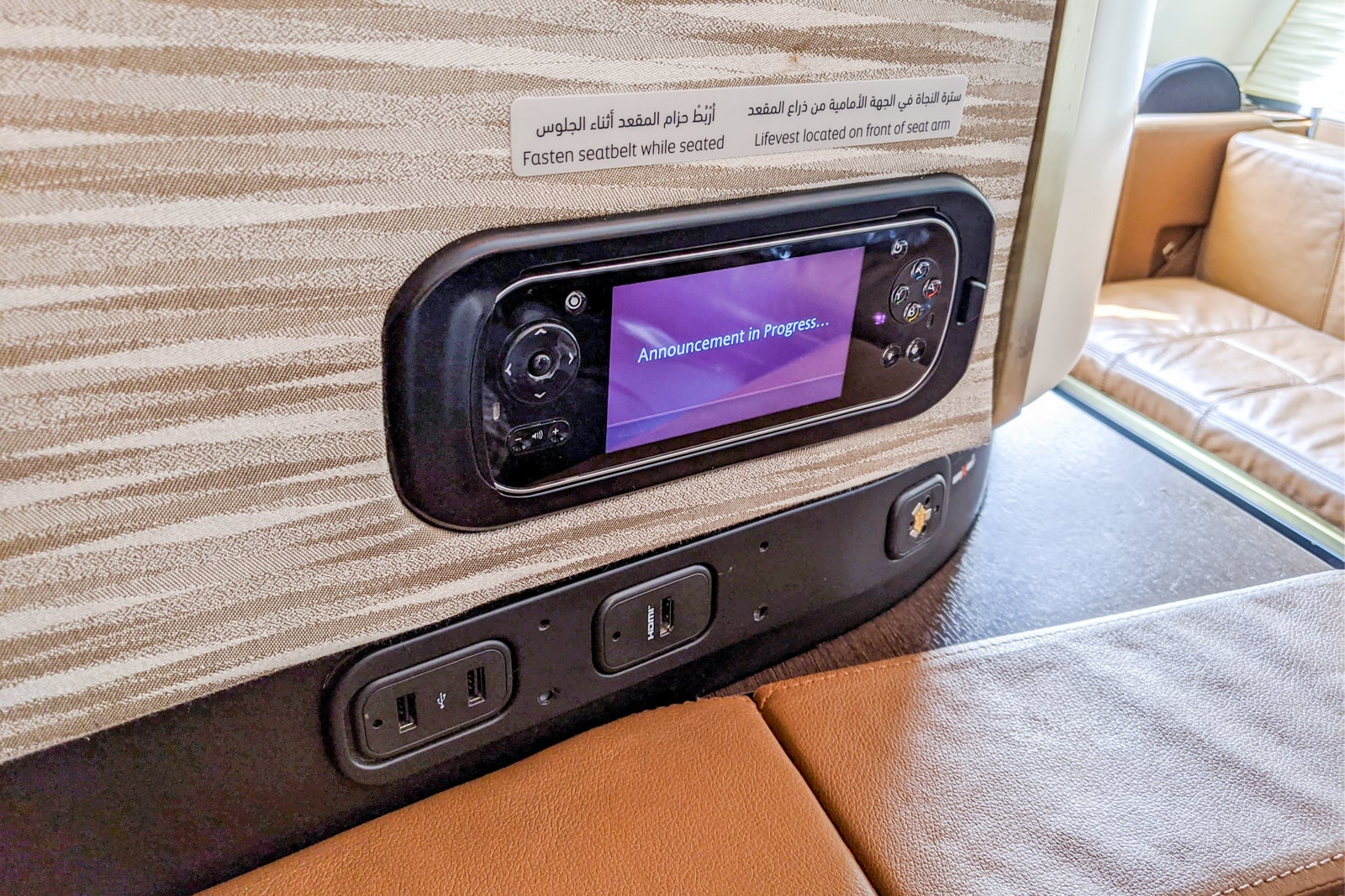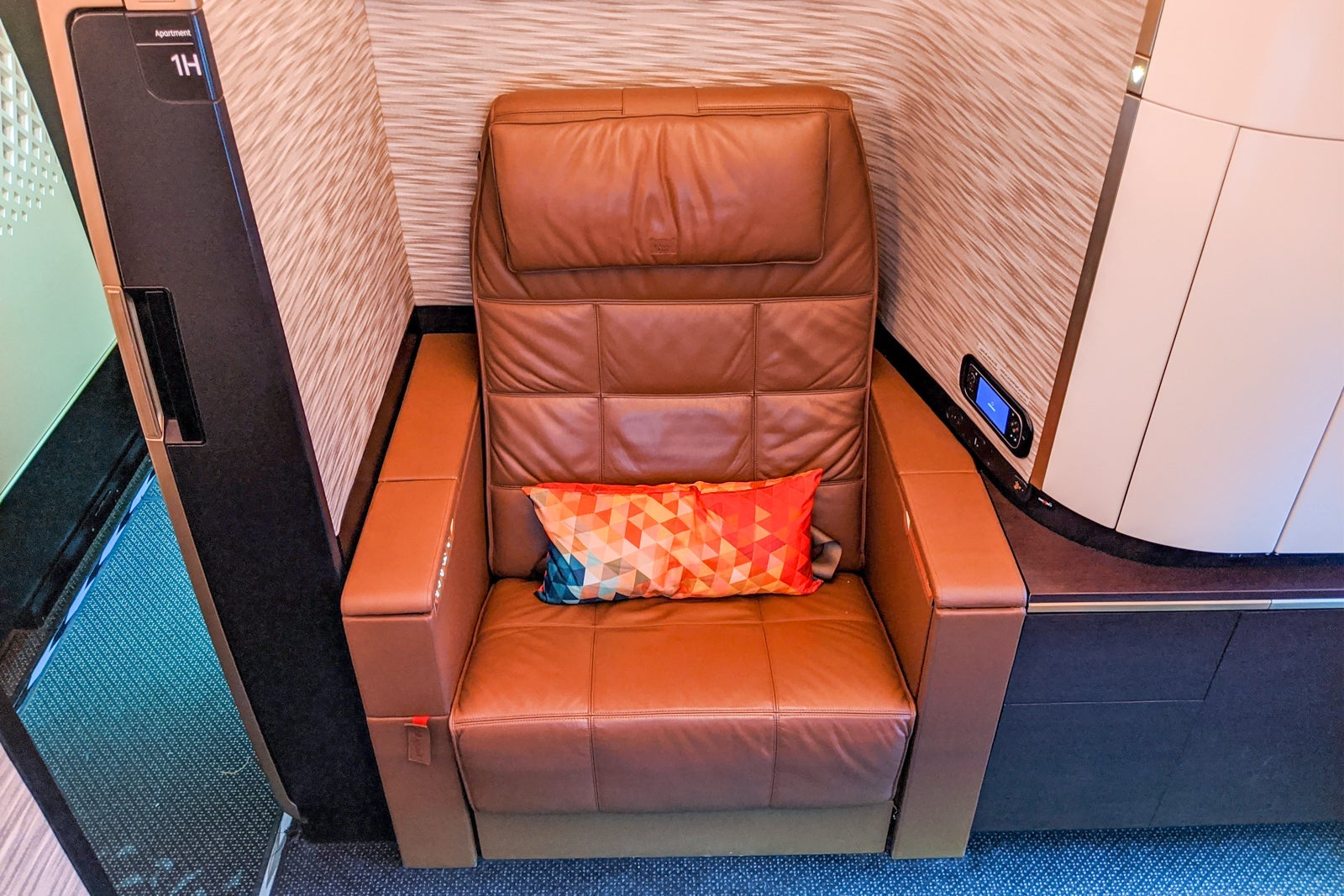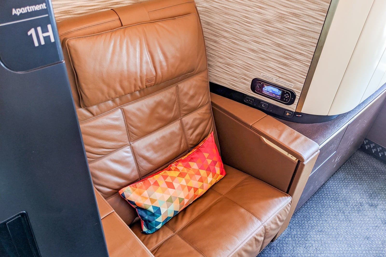 Because I didn't necessarily expect to take this flight and couldn't choose a seat online through American or Etihad, I didn't take the time to call Etihad to reserve a seat when I booked. I forgot until check-in, at which point Etihad allowed me to select the only remaining seat: 1H.
