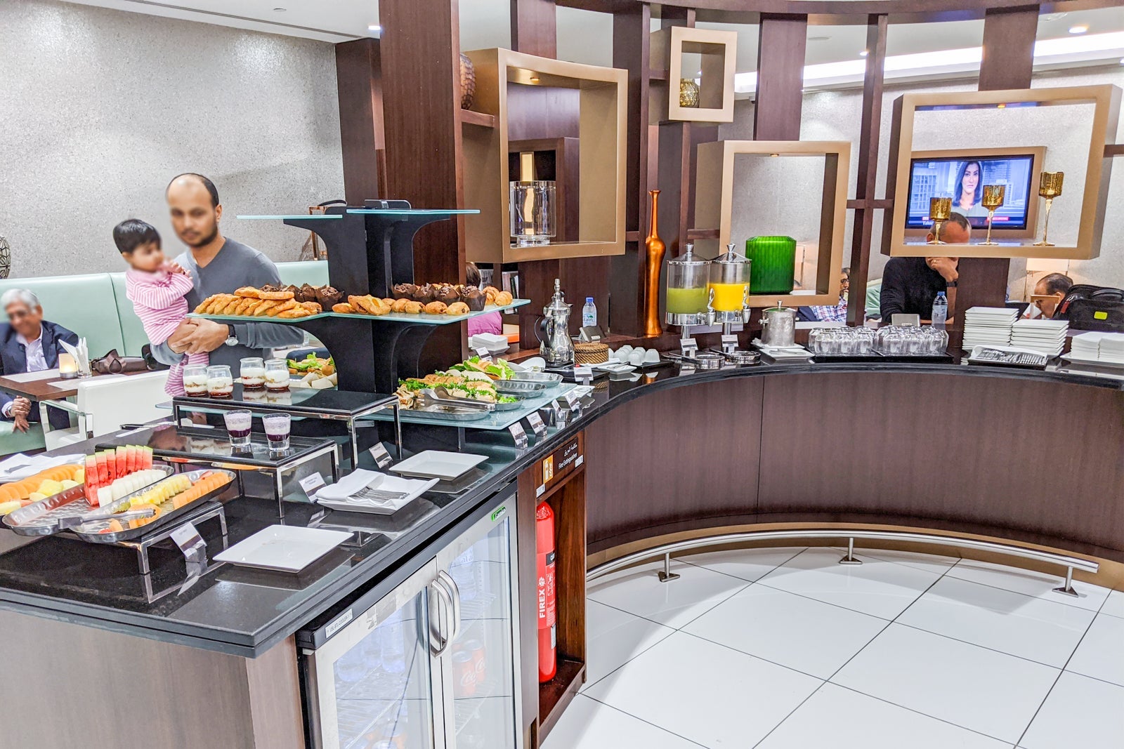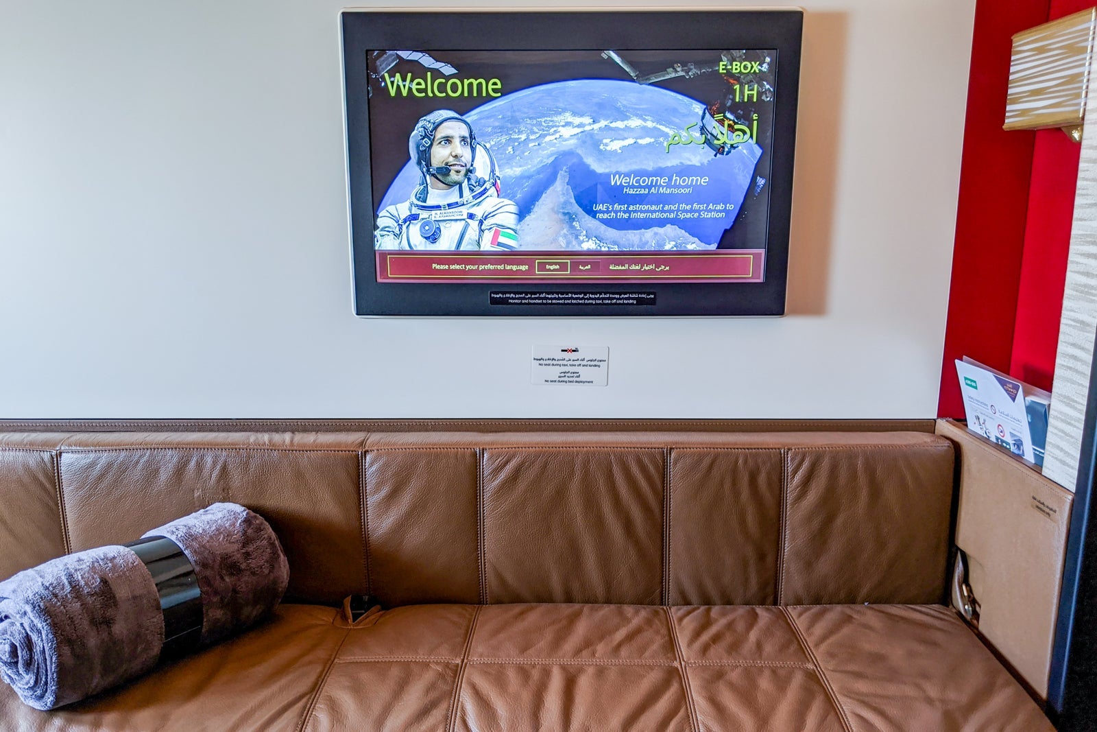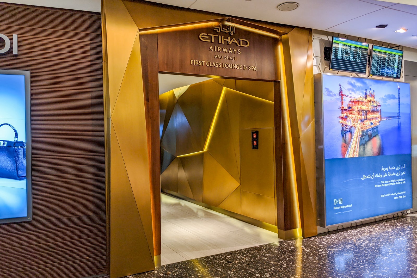 I was able to use a nearby E-gate for United Arab Emirates immigration, which dropped me into a security line shared with business-class passengers. Within seven minutes of starting my check-in process, I was at the entrance to the Etihad Airways First Class Lounge & Spa. I was greeted by an agent and encouraged to take the elevator to the second floor.