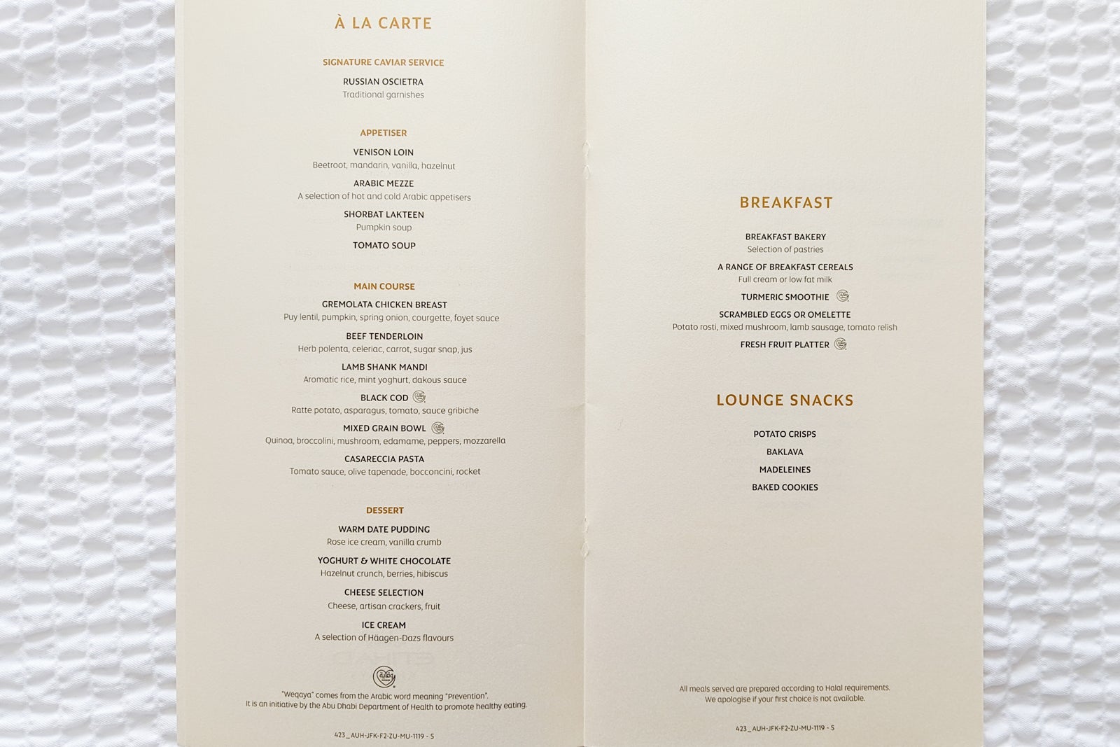 I generally enjoyed my meals, and wish I'd been hungry enough to try more dishes. It was strange to only have eggs offered as a warm option for breakfast, although you could technically order any dish for your arrival meal. Even after asking, I didn't really understand the difference between the à la carte main courses and the lounge and grill sections of the menu; this is one area where Etihad could improve the food and beverage experience.