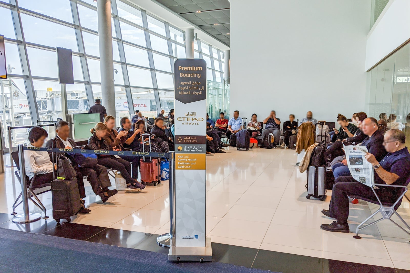 Boarding was scheduled for 9:25 a.m. but preboarding didn't start until 9:50 a.m. Premium Boarding for first class, business class, Platinum and Gold Etihad Guest elites didn't start until 9:52 a.m.