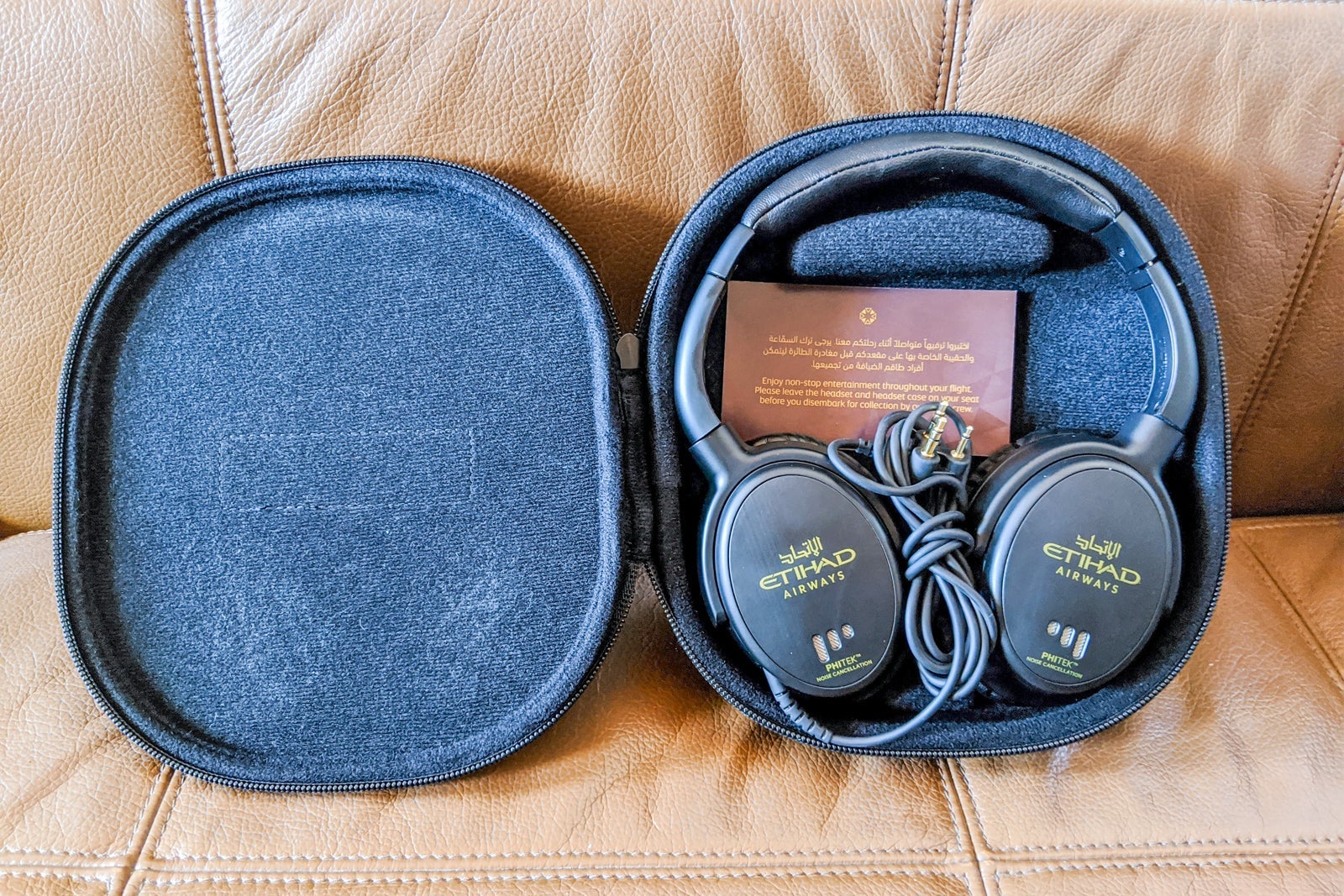 Noise cancelling PHITEK headphones came in a case. They cupped my ears more than my Bose headphones and provided solid noise-cancelling and quality sound.