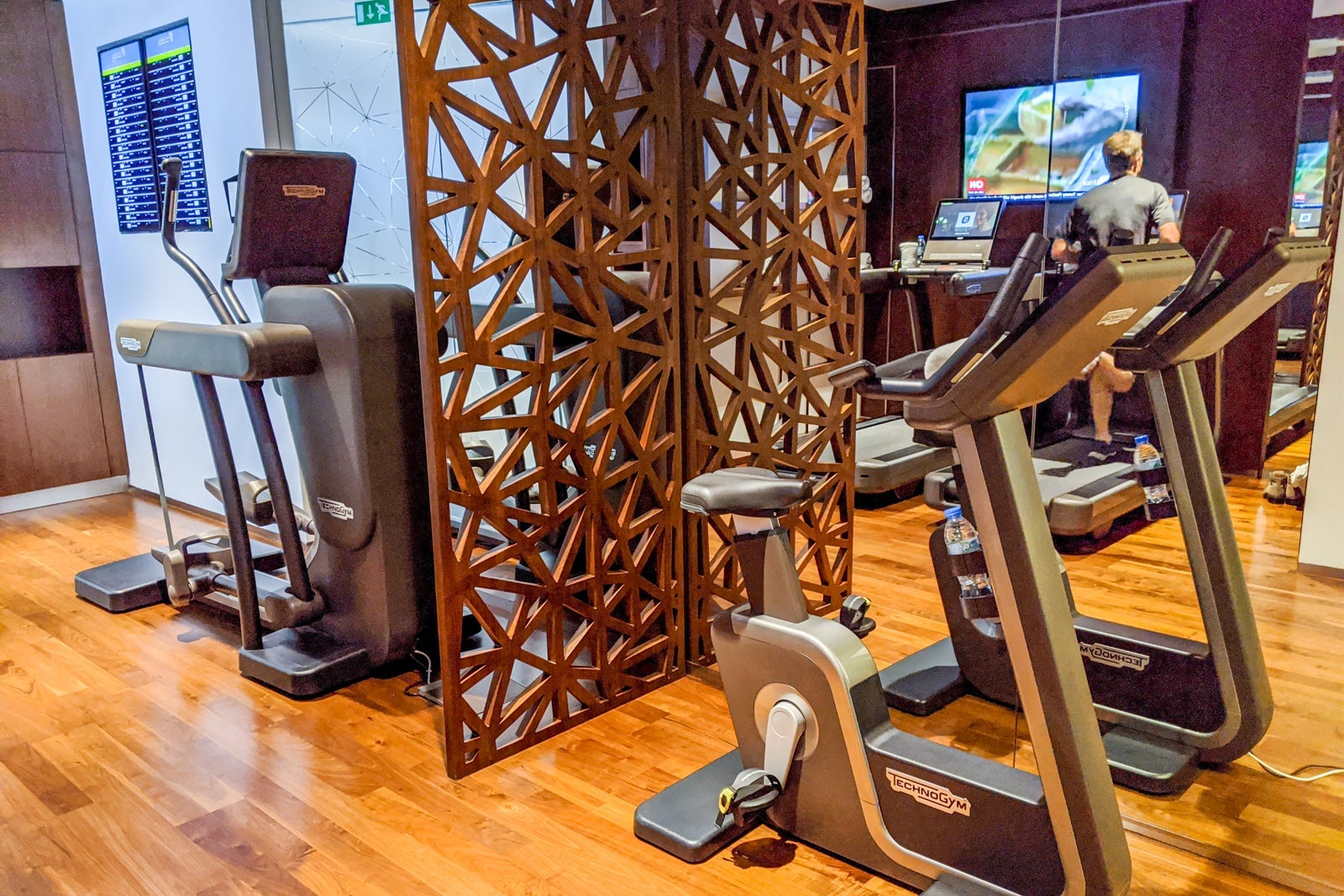 After the massage, I inquired about a shower. All of the spa showers were occupied, so I was led to the women's shower room in the gym. Yes, you read that right. The lounge has its own gym.