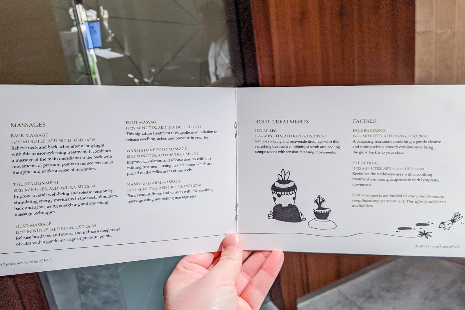 The lounge itself is a maze of rooms. If you want a massage, you should go to the Six Senses Spa as soon as you arrive. As a first-class passenger, I was entitled to a complimentary 15-minute treatment.