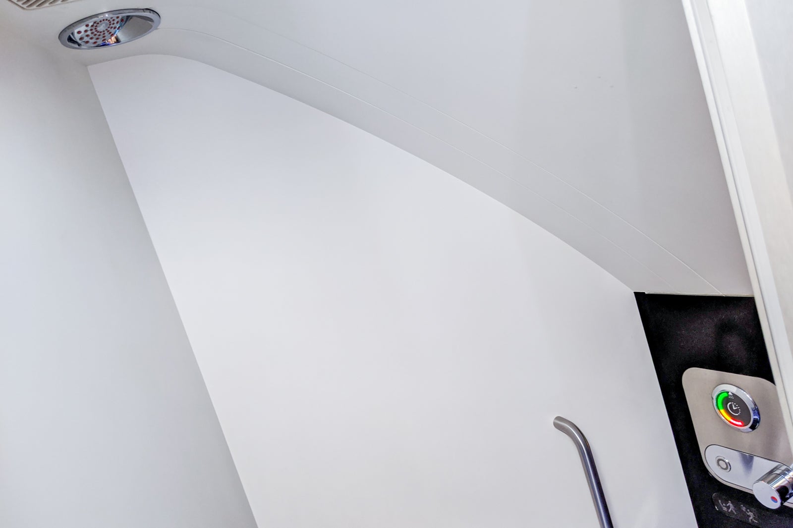 Throughout the flight, I could clearly hear the toilet flush, and the area near my seat was noticeably louder once passengers began to shower near the end of the flight.